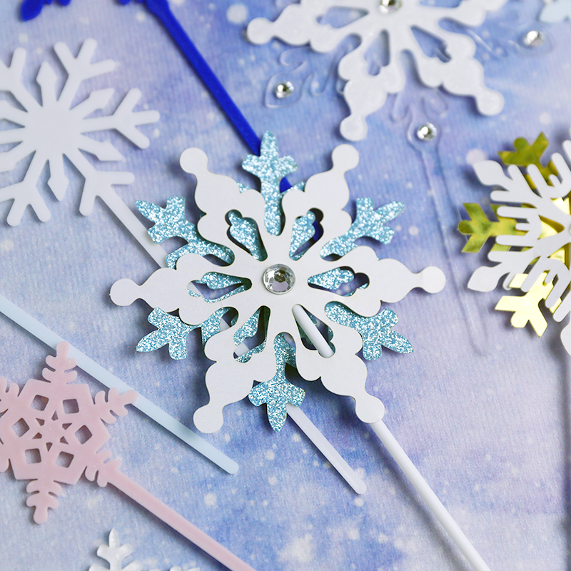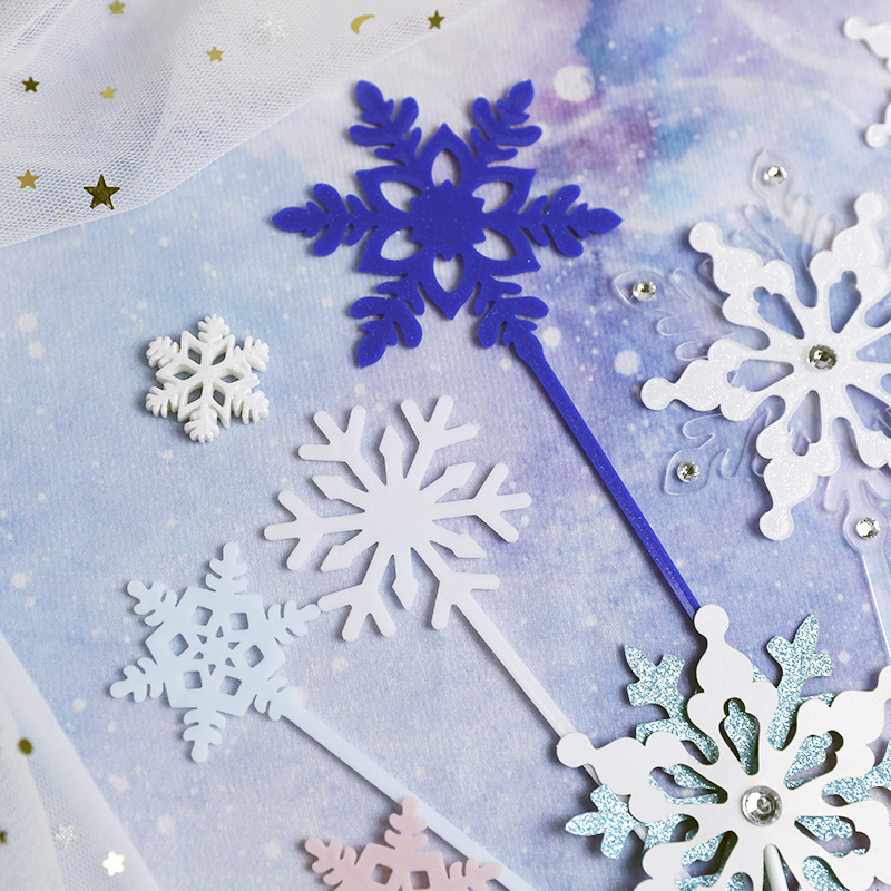 生日蛋糕装饰圣诞节糖珠闪粉雪花插件插卡镭射冰雪派对主题插牌