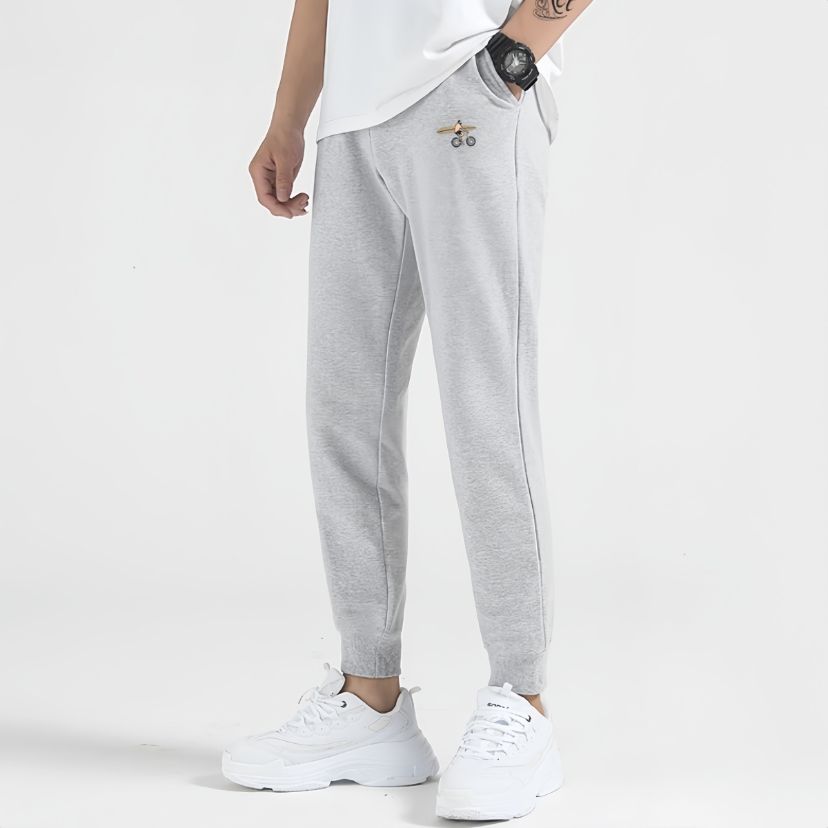 男士春秋季新款纯色休闲卫裤网红春秋百搭九分束脚小脚运动哈伦裤