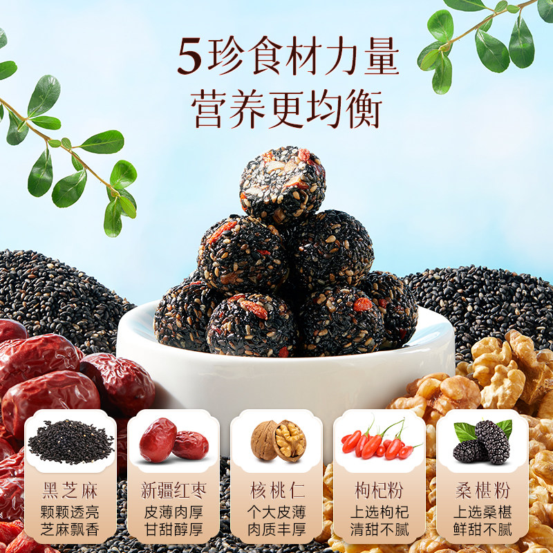 东方颜究生核桃桑椹黑芝麻丸250g高钙高蛋白年货滋补零食三只松鼠
