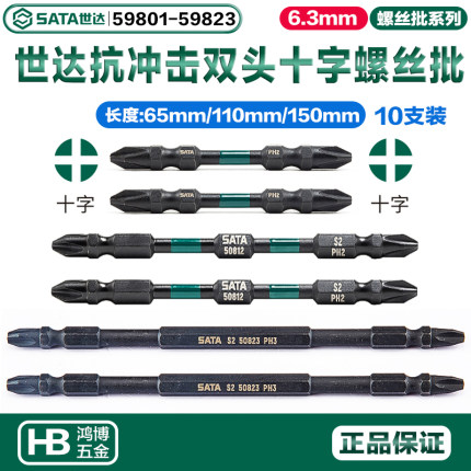 世达电钻批头6.3mm抗冲击十字双头旋具头螺丝批59801 59811 59821