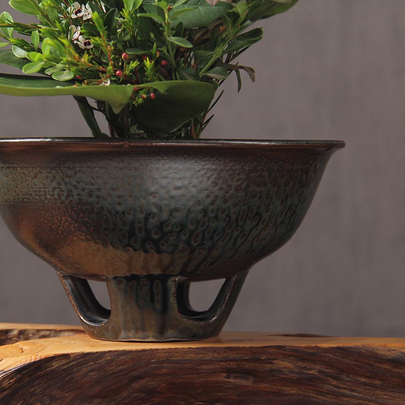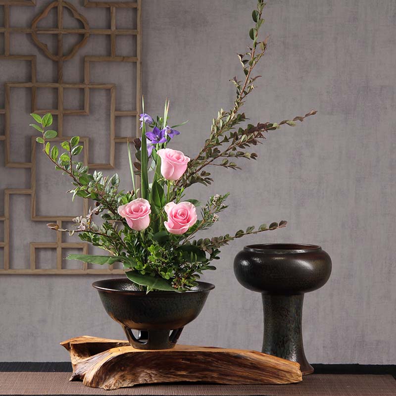 梅花碗复古手工拉坯陶瓷花盆花器花碗 中华花艺插花专用工具