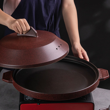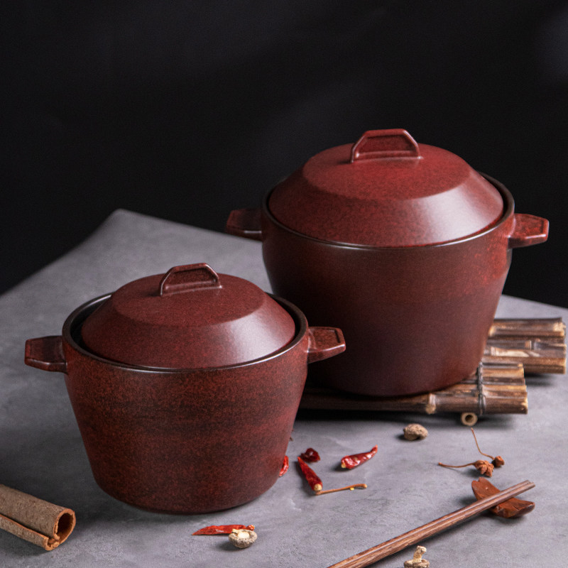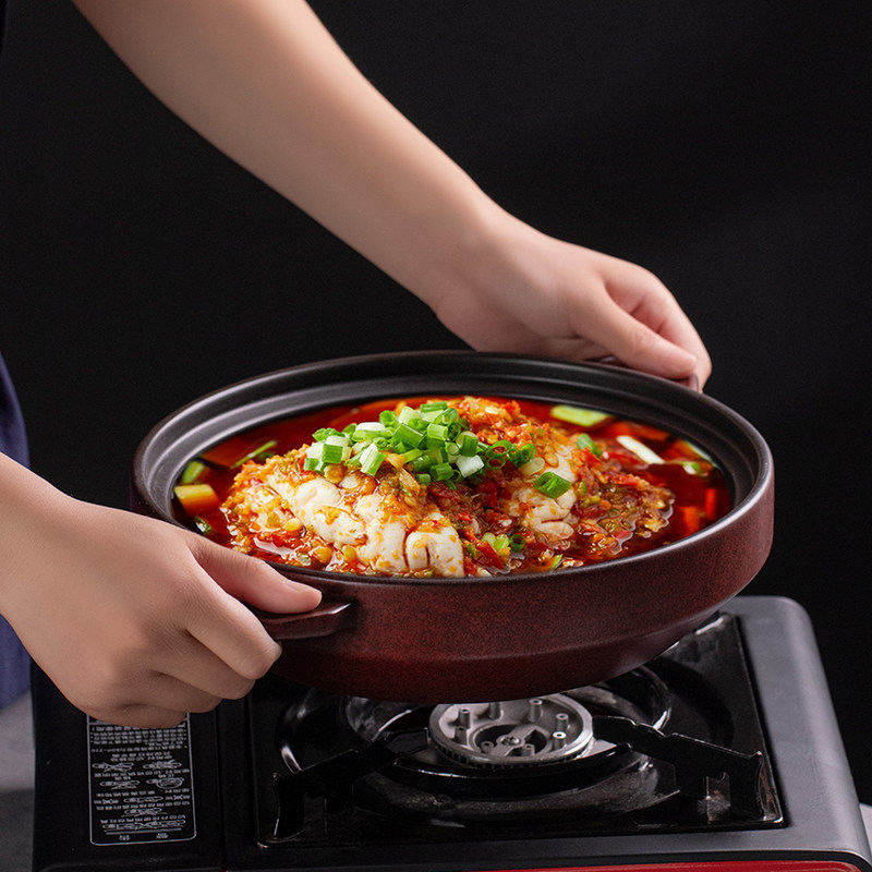 中式双耳陶瓷耐热红色汤锅砂锅煲烧鱼头甲鱼大砂锅创意酒店餐具