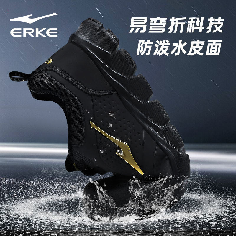 鸿星尔克男鞋冬季2025新款跑步鞋子皮面防水运动鞋男士保暖休闲鞋
