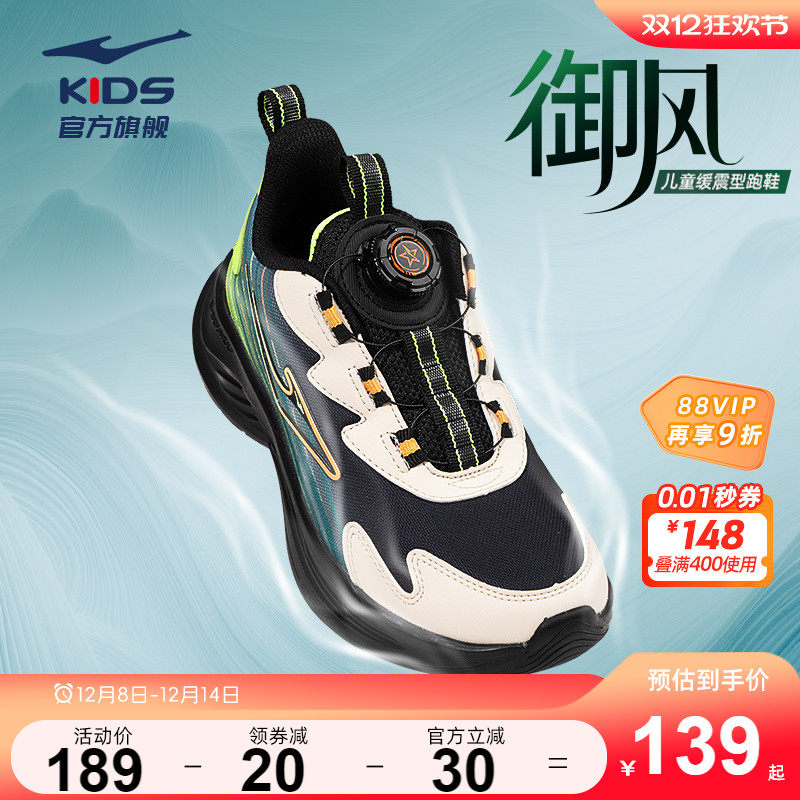 【好物体验专享】鸿星尔克儿童跑鞋透气网面旋钮透气男童鞋运动鞋