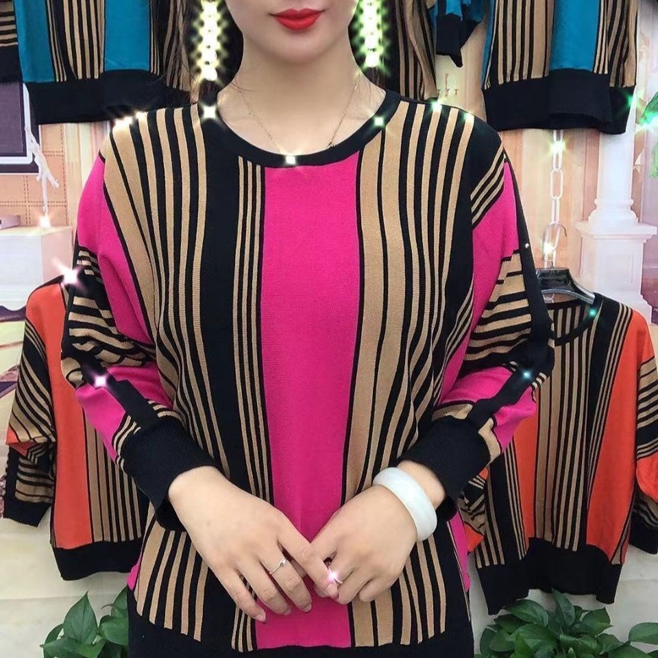 蝙蝠衫妈妈装春款加肥加大毛衣新款中老年宽松洋气百搭打底衫上衣
