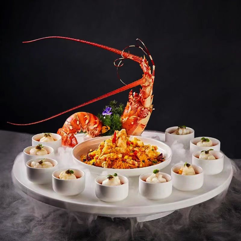 特色海鲜干冰盘功夫汤意境餐具澳州龙虾拼盘火锅店密胺涮肉卷摆盘