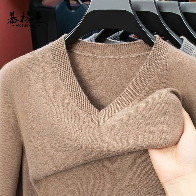 100纯羊毛衫男V领加厚高端柔软