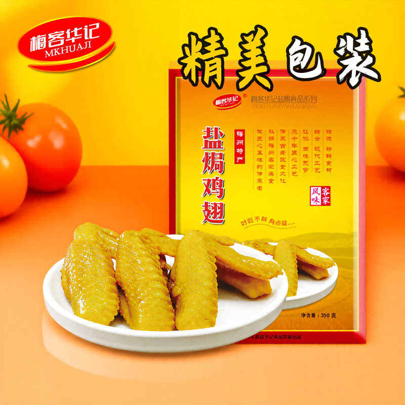 梅客华记盐焗土鸡翅梅州客家特产盐局即食网红休闲小包装零食熟食
