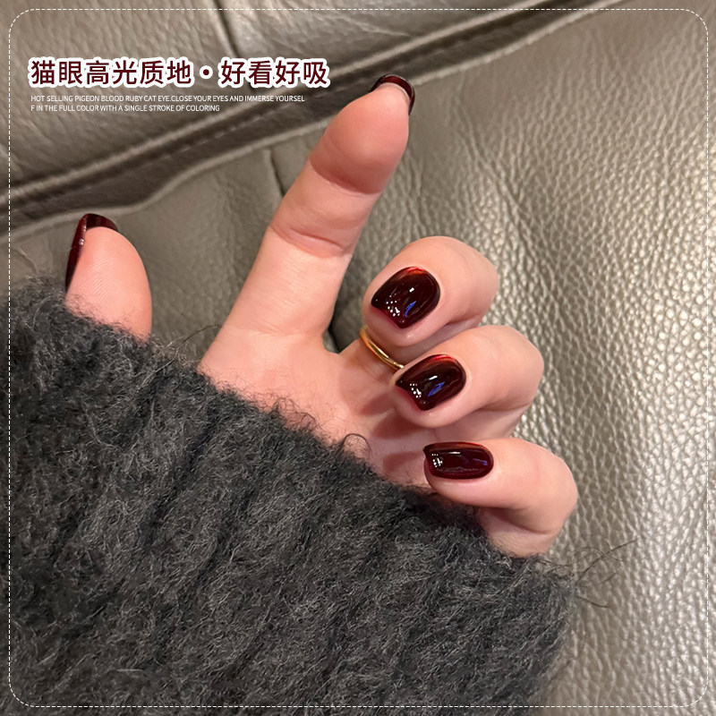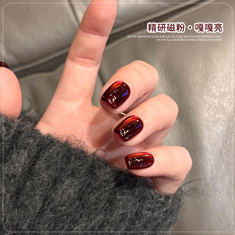 新年鸽血红宝石玻璃珠猫眼指甲油胶2025年新款显白酒红美甲专用胶