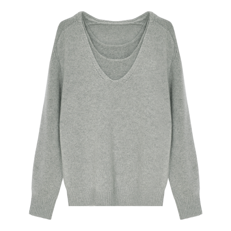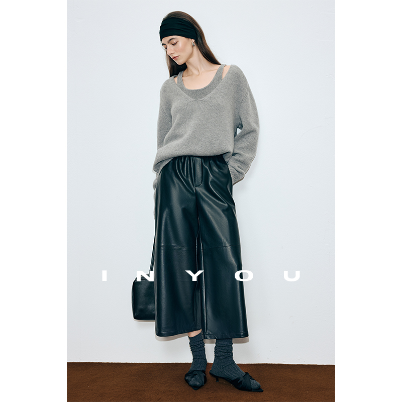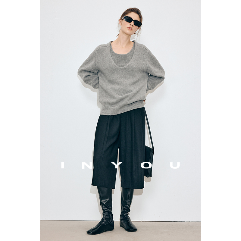 因由 博主风时髦羊毛秋冬极简风挖肩背心毛衣女针织上衣两件套