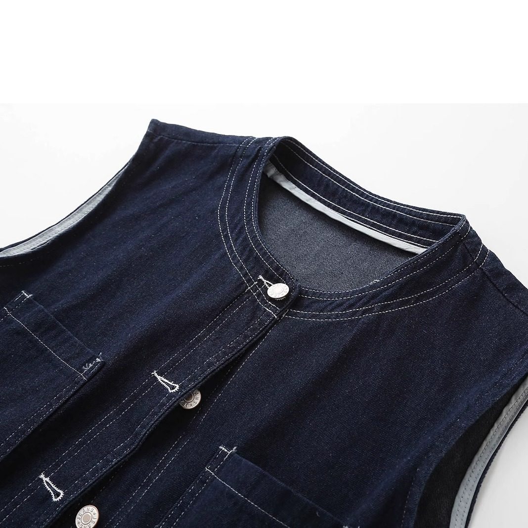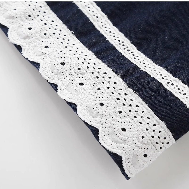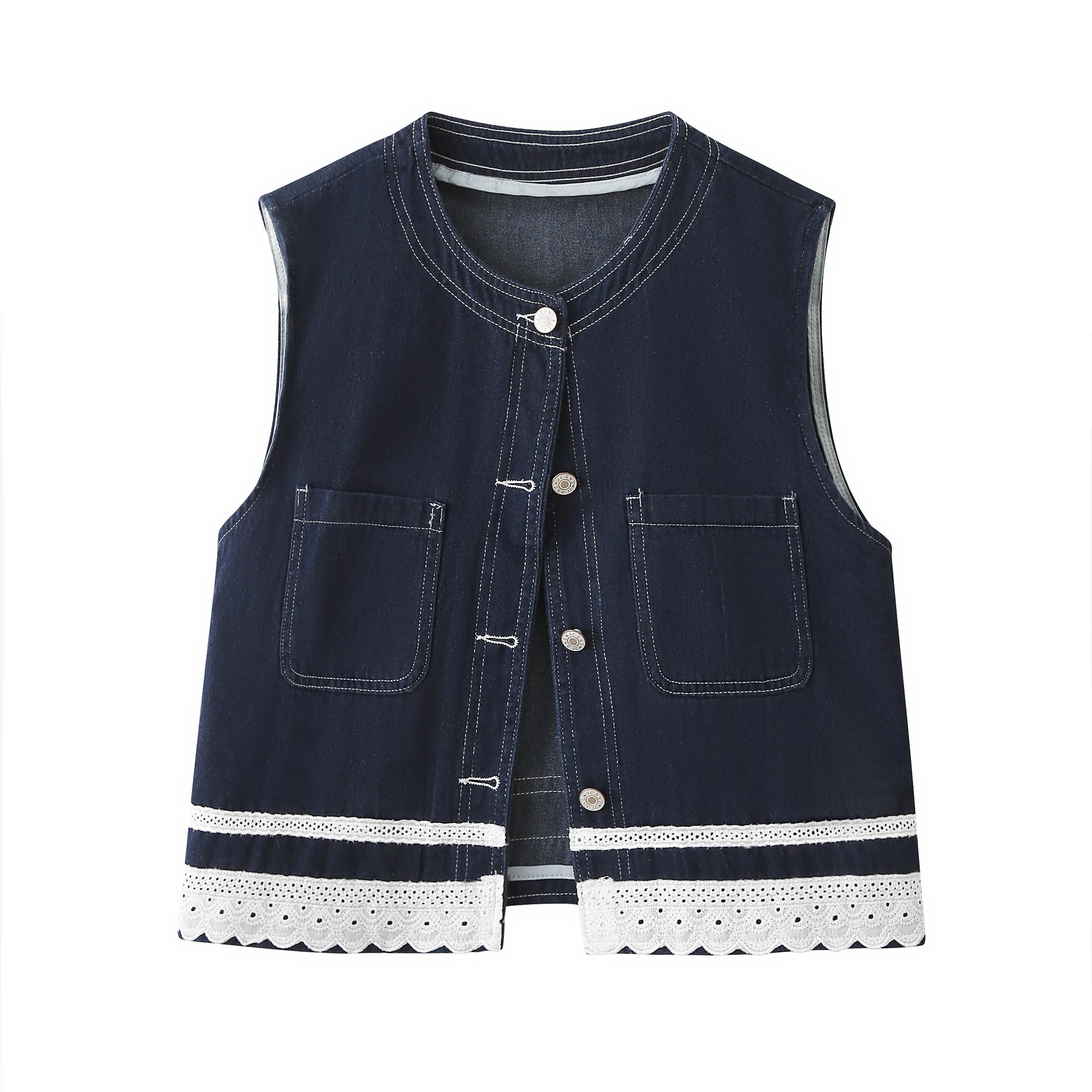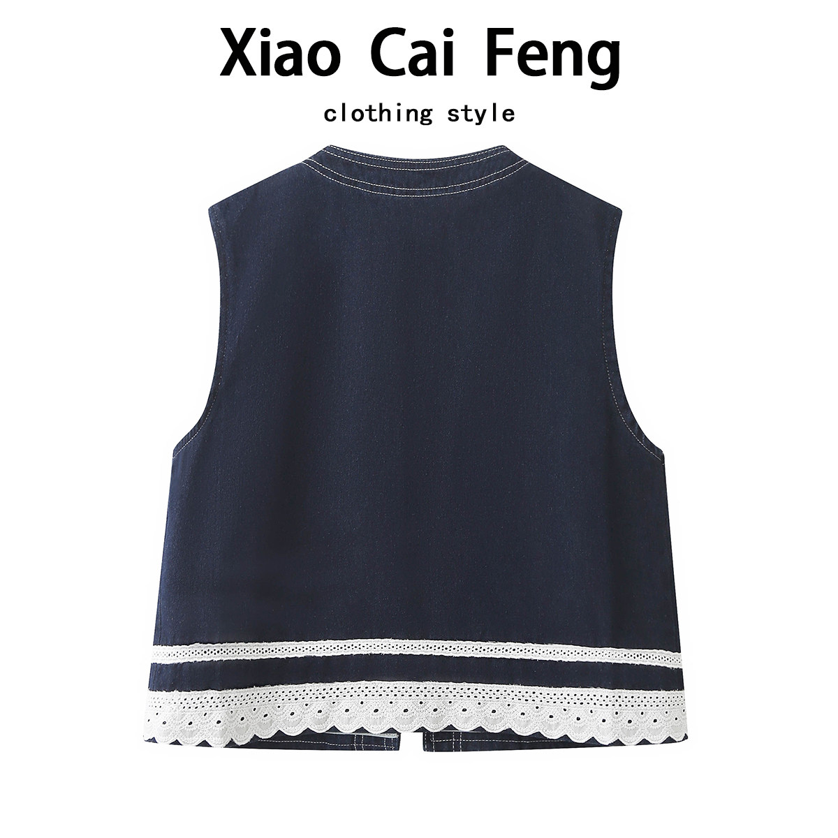 高级感韩系蕾丝花边牛仔马甲背心外套女春夏薄款无袖叠穿坎肩上衣