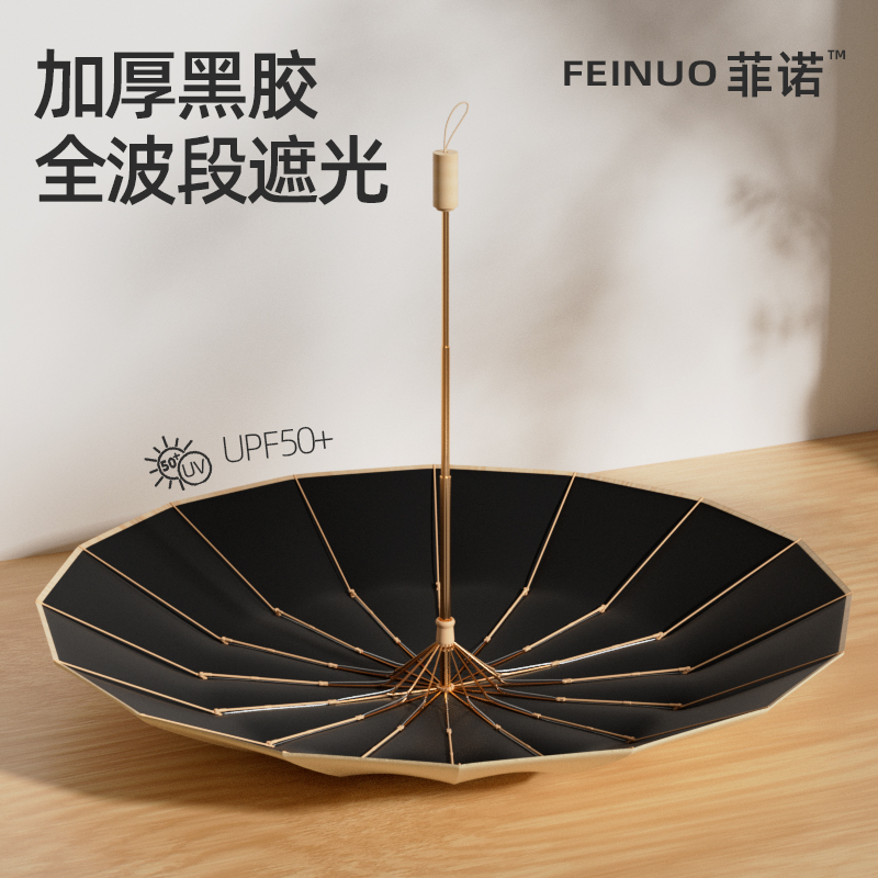 菲诺16骨雨伞晴雨两用黑胶防晒