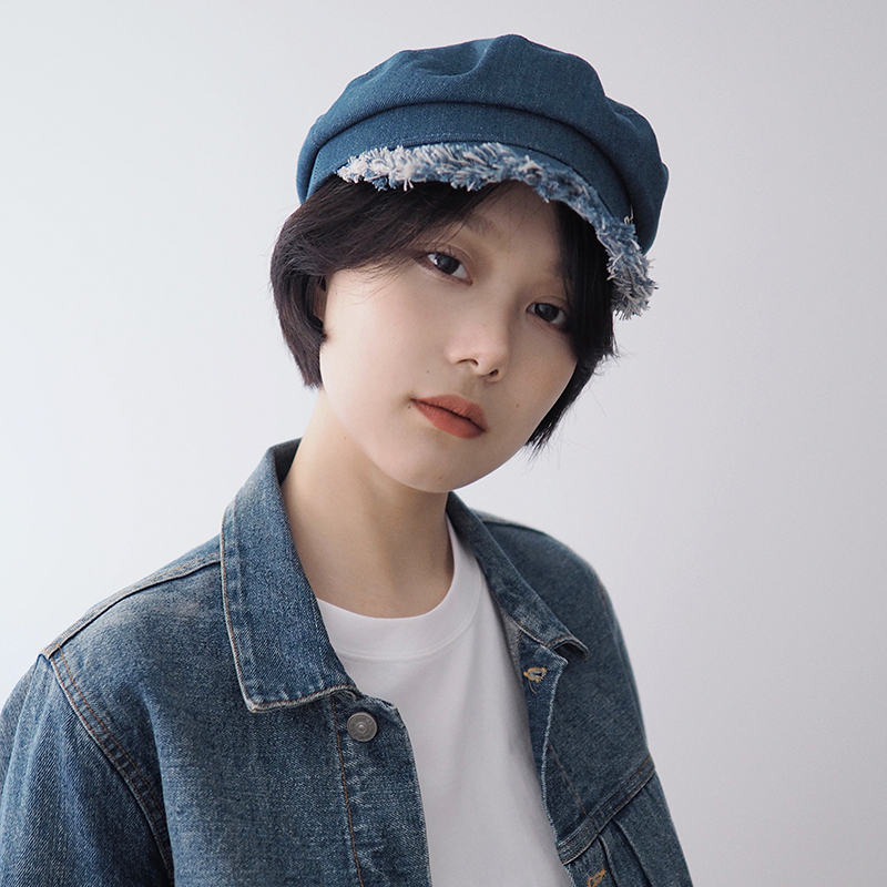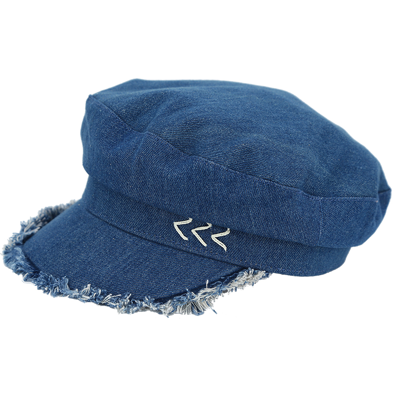 Lion~听见海 原创手工磨毛边几何刺绣牛仔海军帽平顶帽鸭舌帽男女