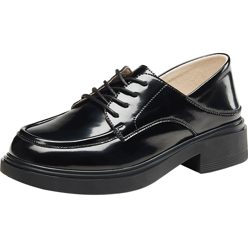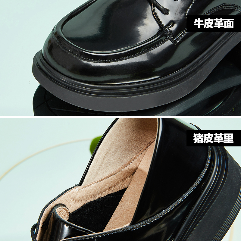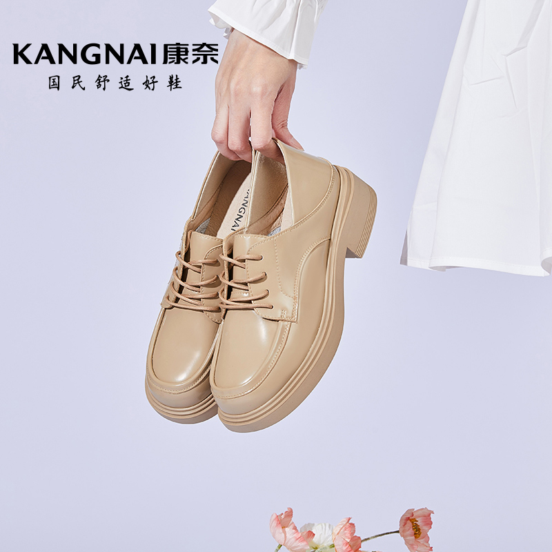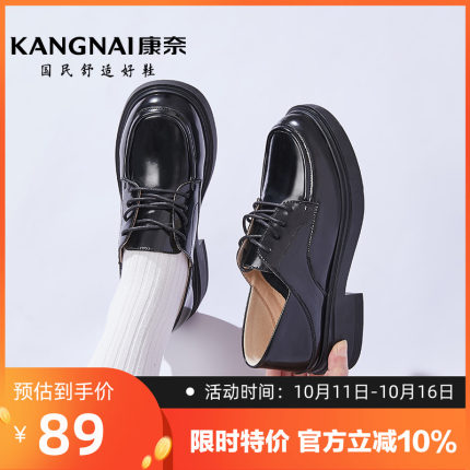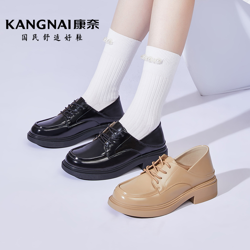 康奈官方女鞋英伦小皮鞋女时尚增高真皮黑色深口单鞋女春季新品