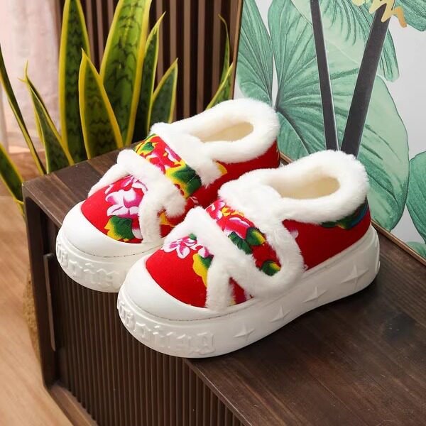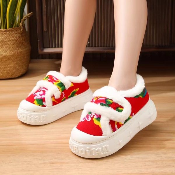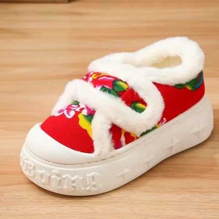 东北大花毛毛棉拖鞋女冬季居家厚底防滑加绒保暖包跟棉鞋加厚外穿
