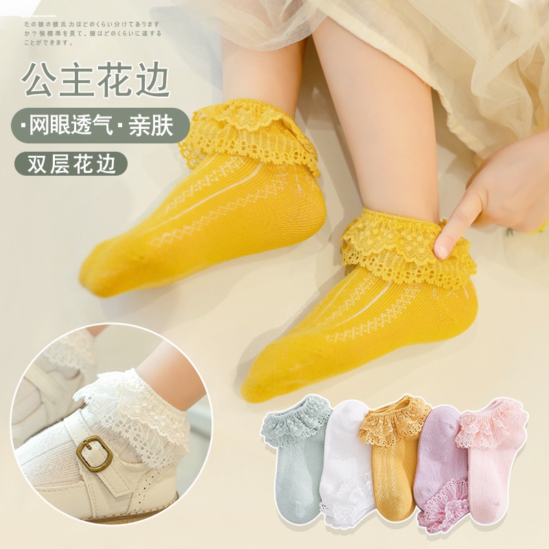春秋薄款儿童袜子女童纯棉蕾丝花边公主袜婴儿短袜夏季小宝宝船袜