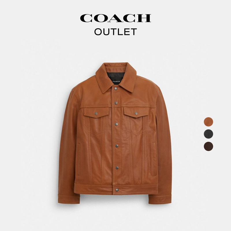 【新品】COACH/蔻驰奥莱男士牛皮革褐色TRUCKER夹克外套高级感