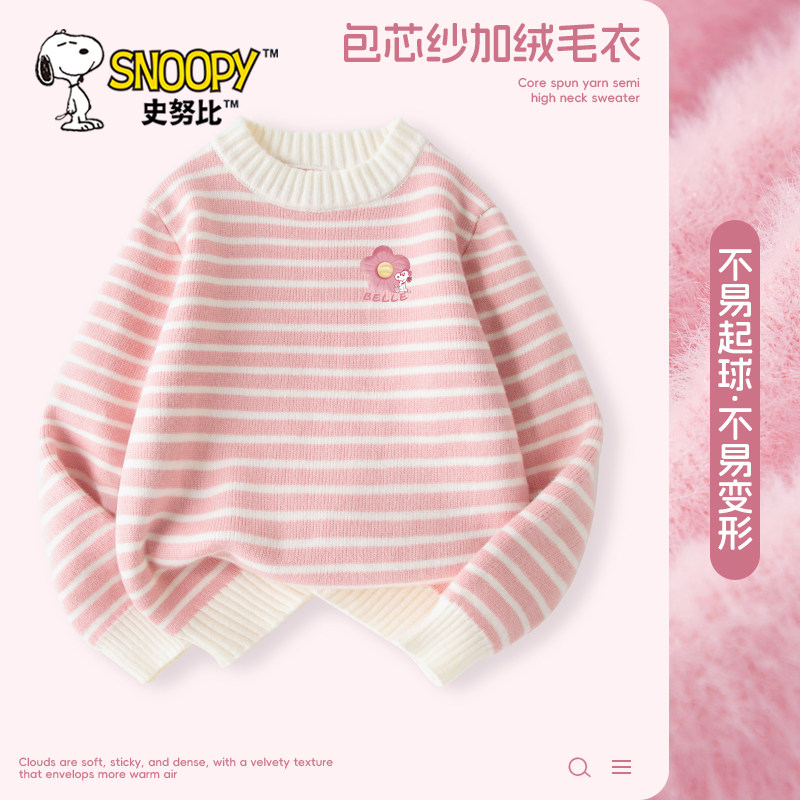 史努比女童加绒毛衣春秋2026新款女孩针织衫加厚一体绒儿童毛线衣