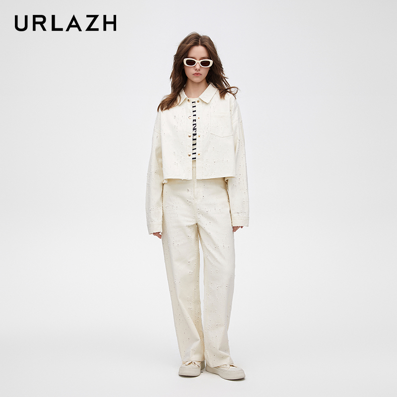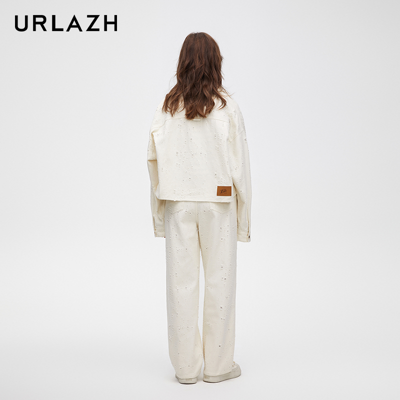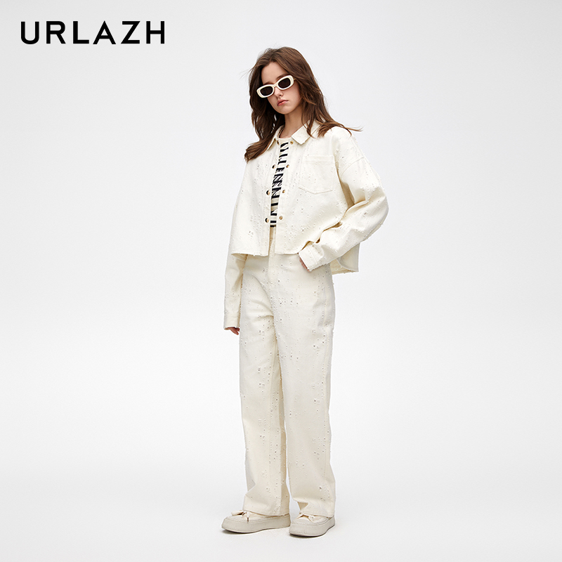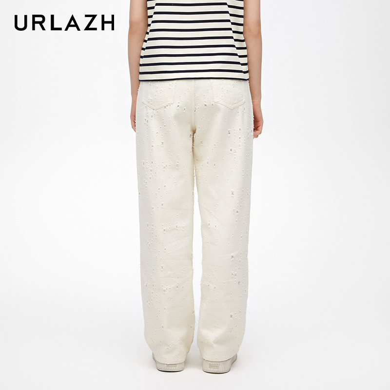 urlazh/有兰破洞直筒白牛仔裤