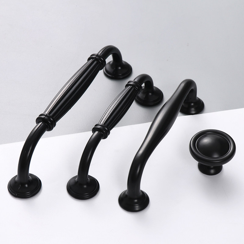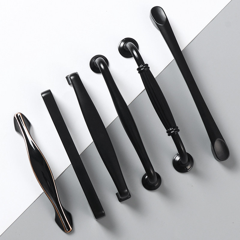 黑色衣柜门把手橱柜抽屉拉手美式现代简约欧式柜子单孔小拉手实心
