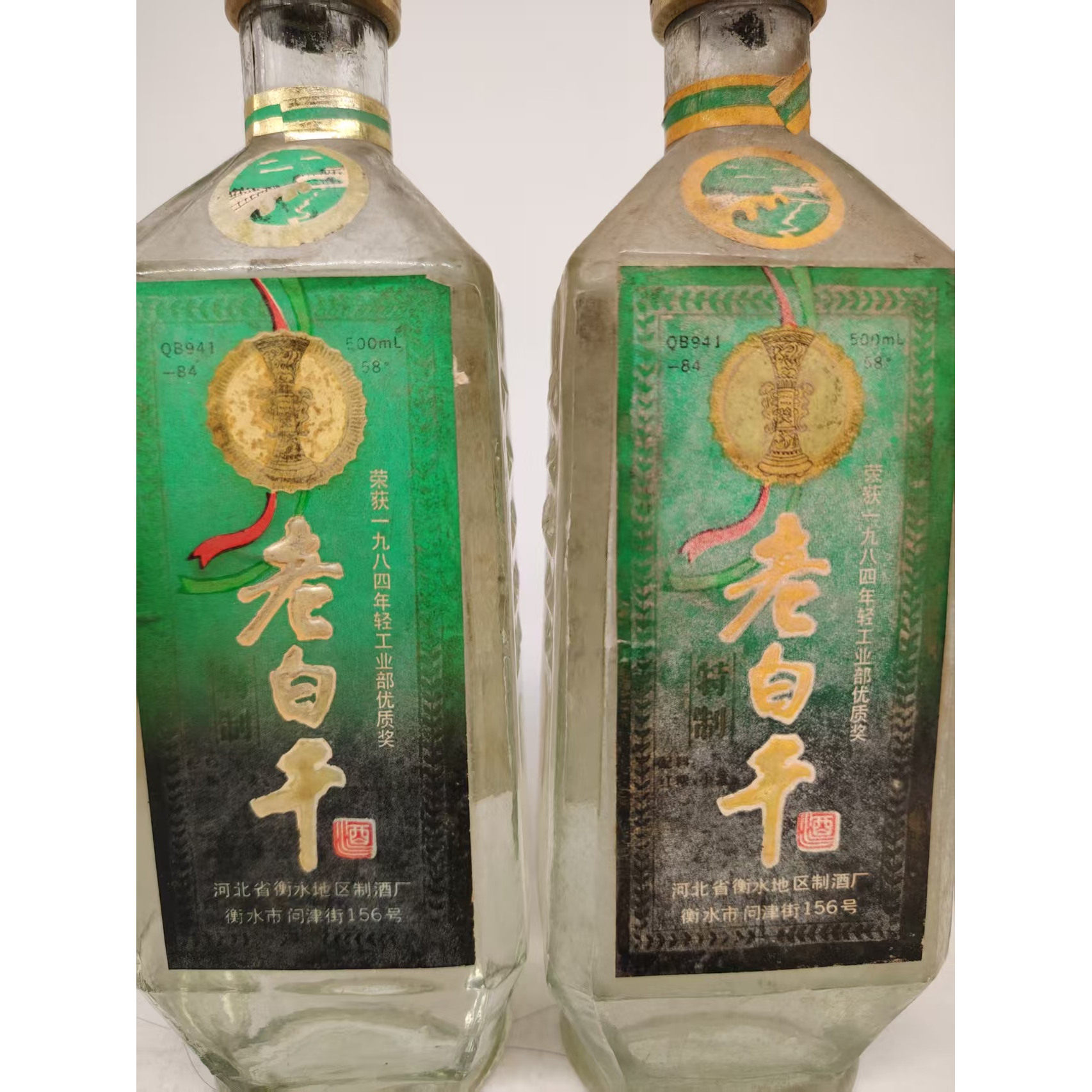 九十年代早期58度河北厂老白干香型衡水老白干酒500ml*2老酒保真