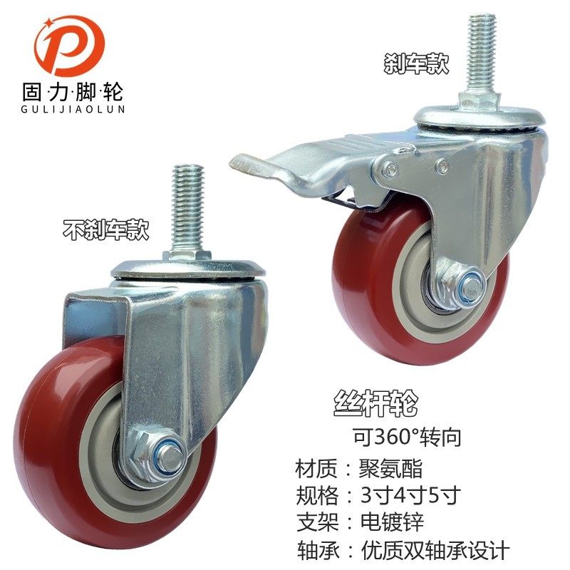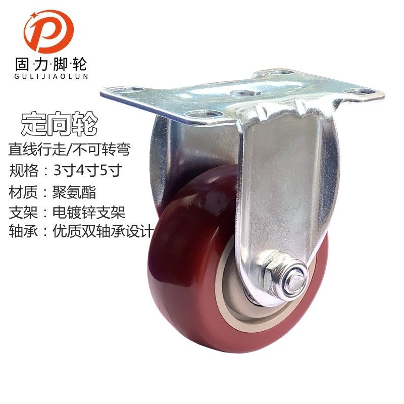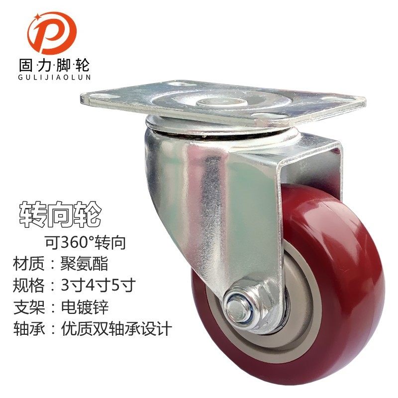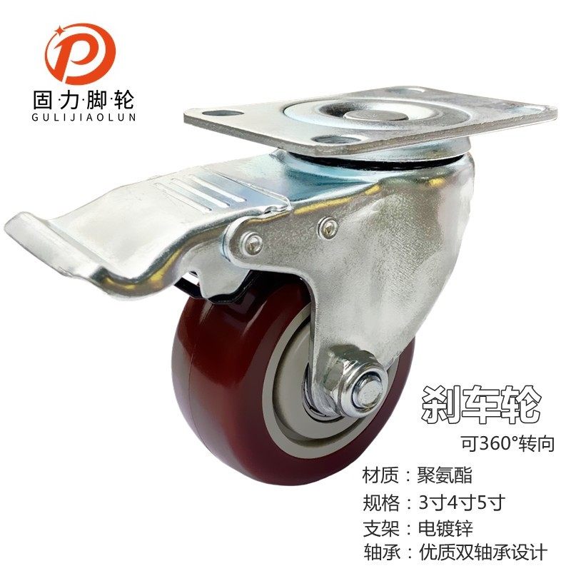 固力万向轮子重型带刹车通用3寸4寸静音脚轮手推平板车转向定向轮
