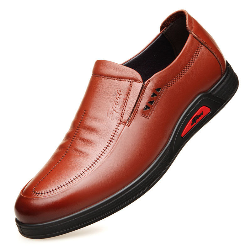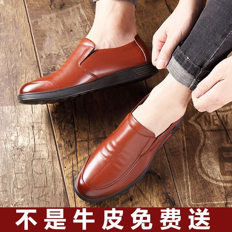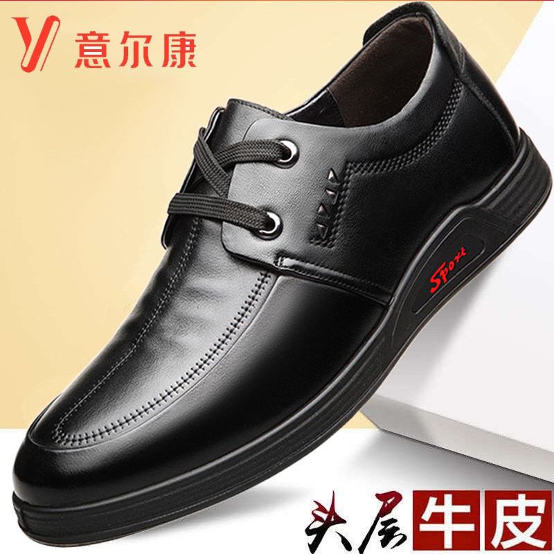 意尔康男鞋秋季新款商务真皮休闲鞋男士套脚软皮软底中老年爸爸鞋
