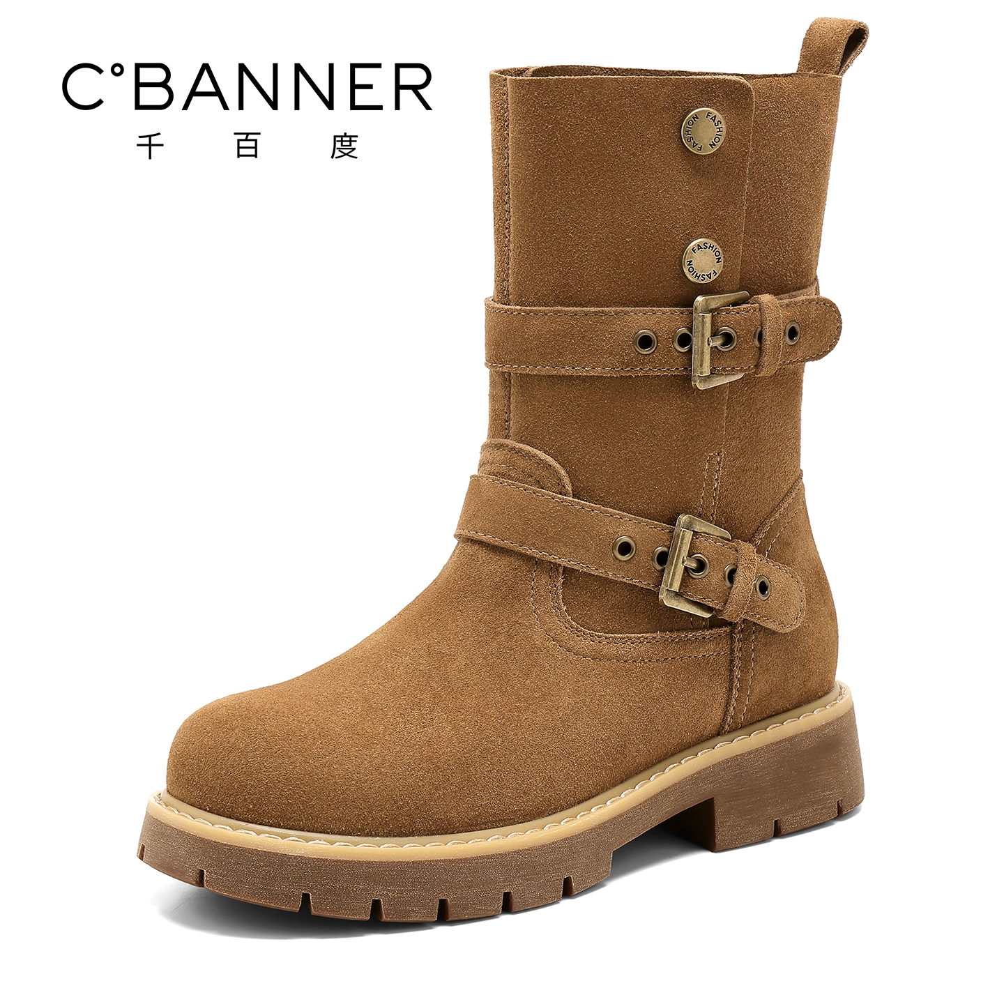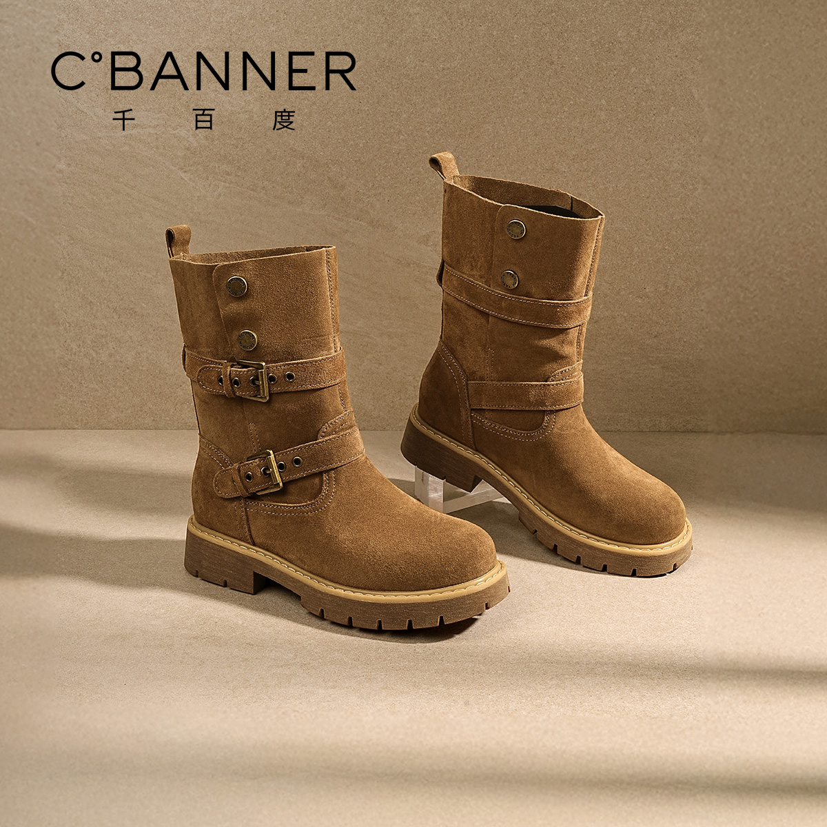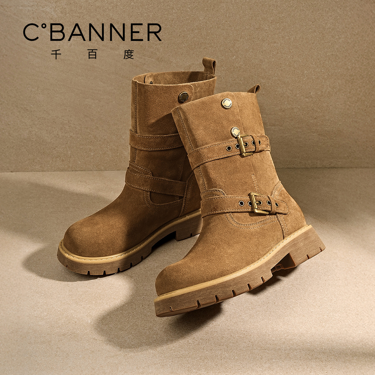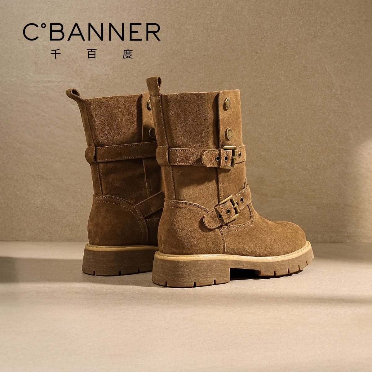 千百度新款美拉德西部短靴