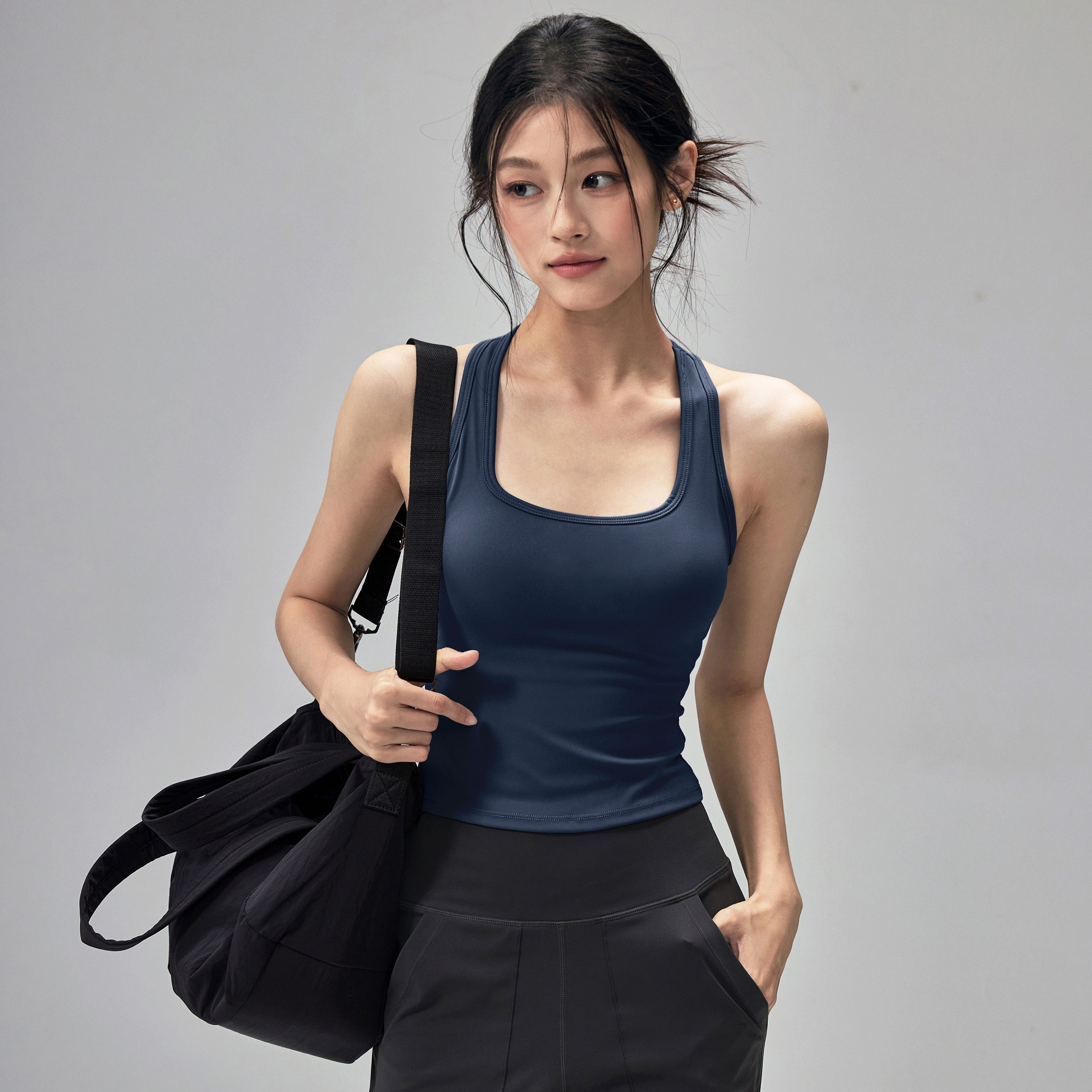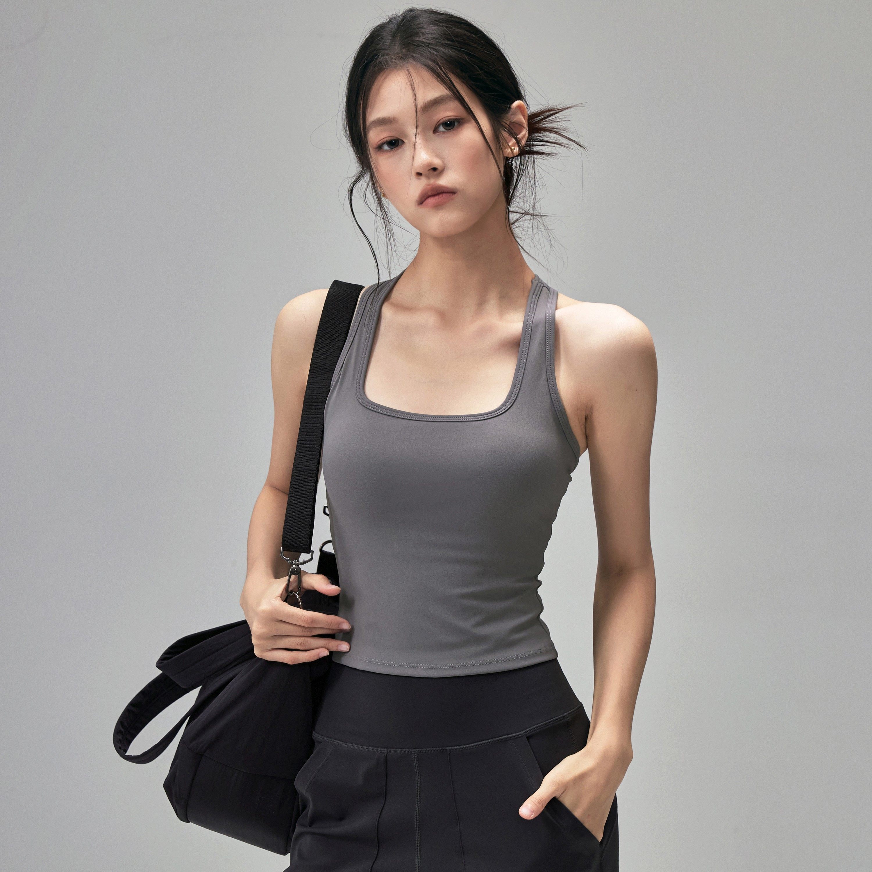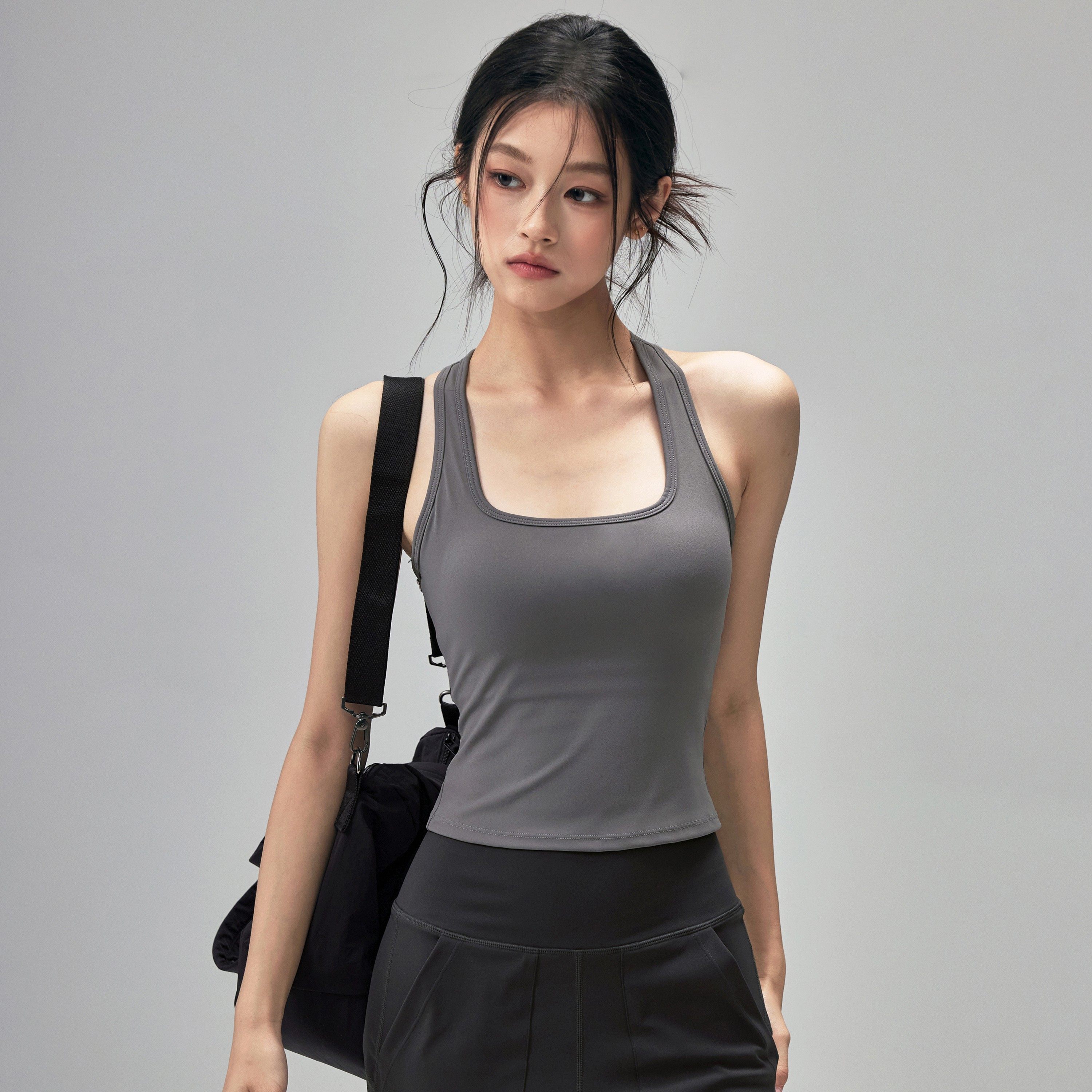 工字运动背心女带胸垫修身透气瑜伽服外穿跑步训练健身内衣夏季薄