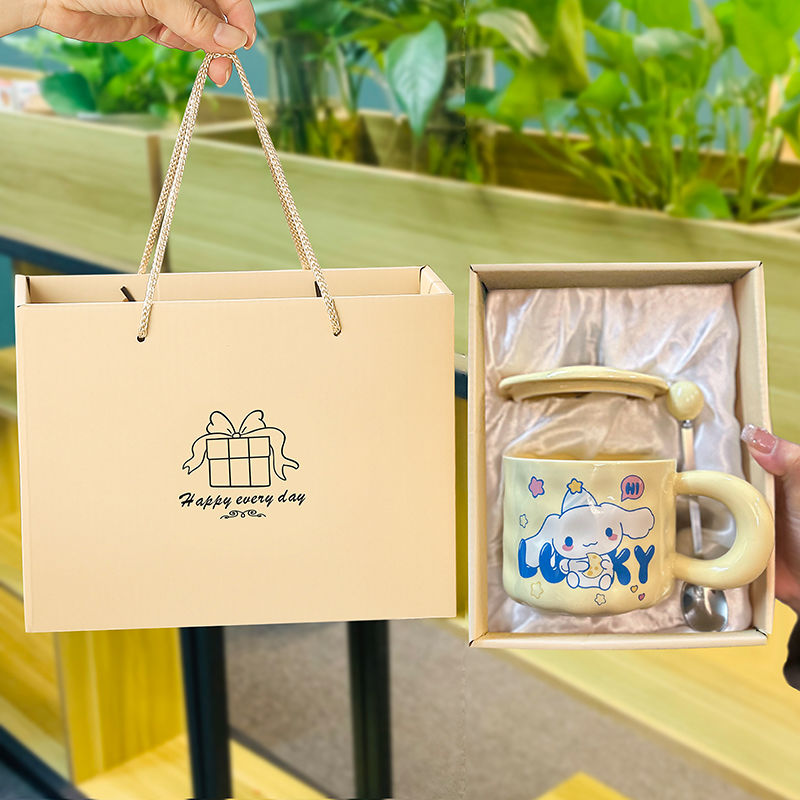 奶呼呼杯子创意ins风陶瓷杯带盖家用可爱情侣水杯礼盒网红玉桂狗