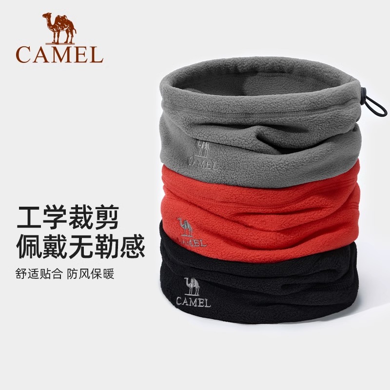 骆驼抓绒帽子围脖两用秋冬2025新款加厚保暖防风冷帽大头围包头帽