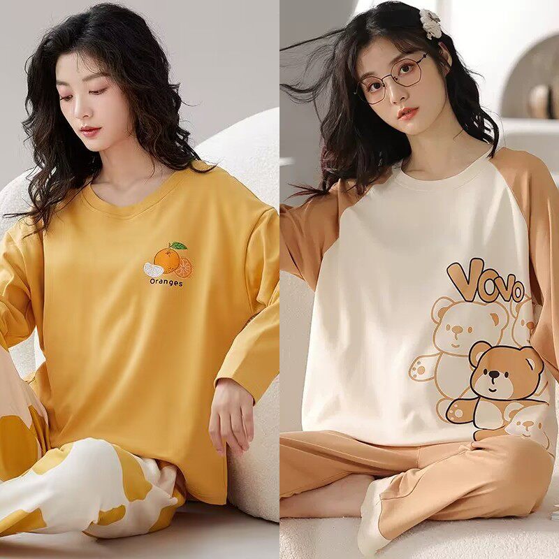 睡衣女春秋款100%纯棉2025年新款春夏季大码全棉可外穿家居服套装