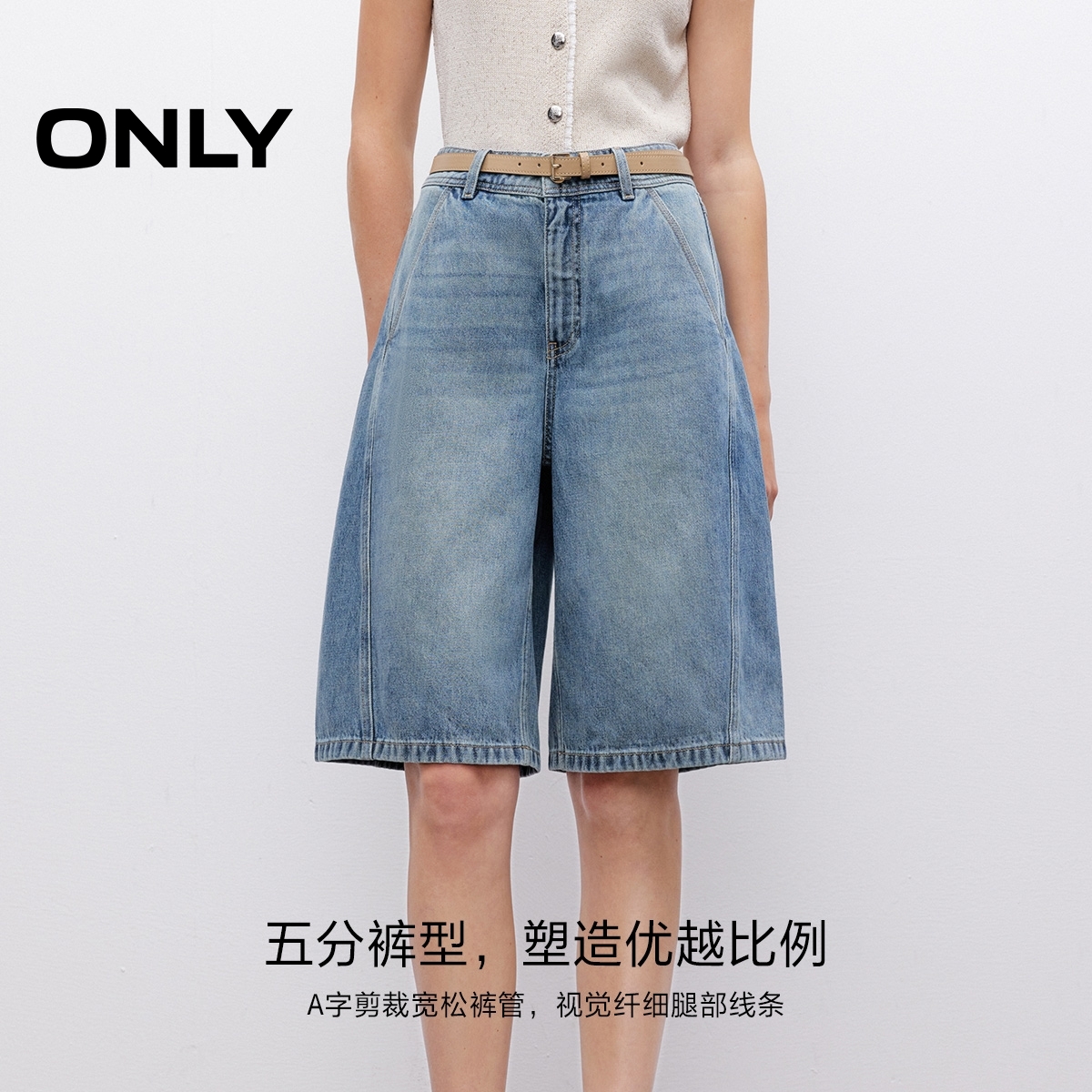 ONLY奥莱2025夏季新款松弛感斜线剪裁设计显瘦显腿长短裤牛仔裤女