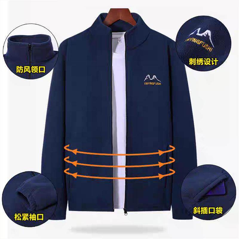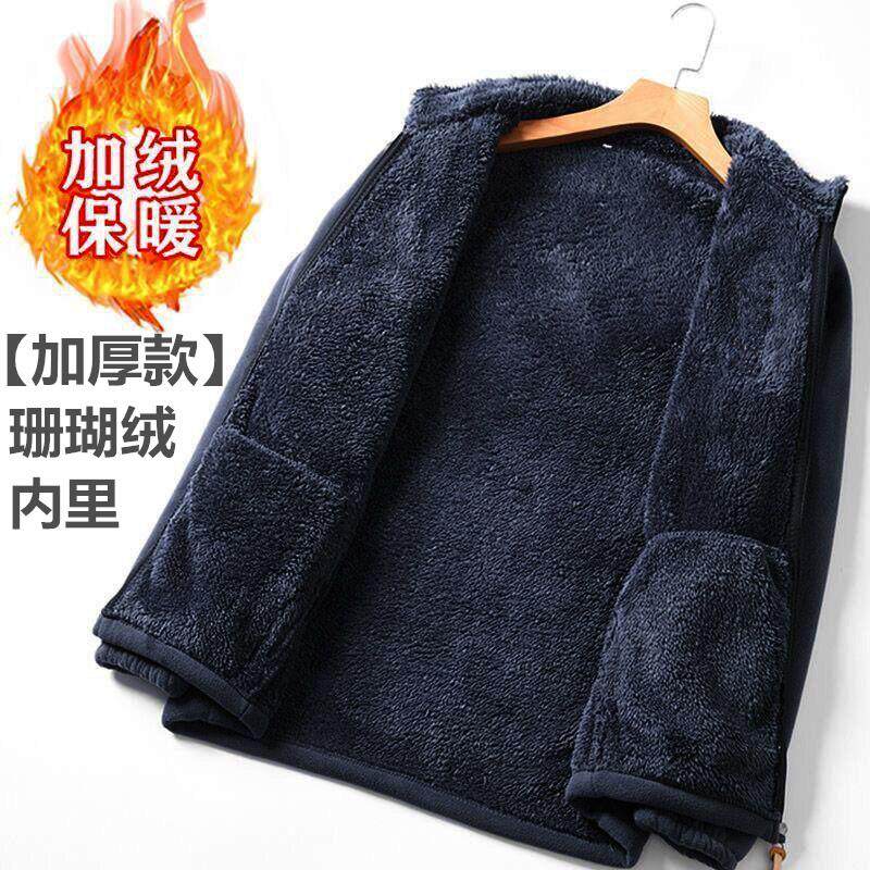 春秋季新款摇粒绒外套中年男士立领卫衣爸爸加绒加厚保暖大码上衣