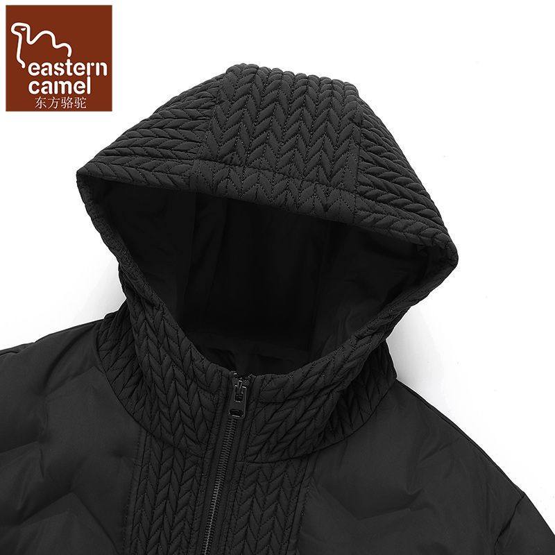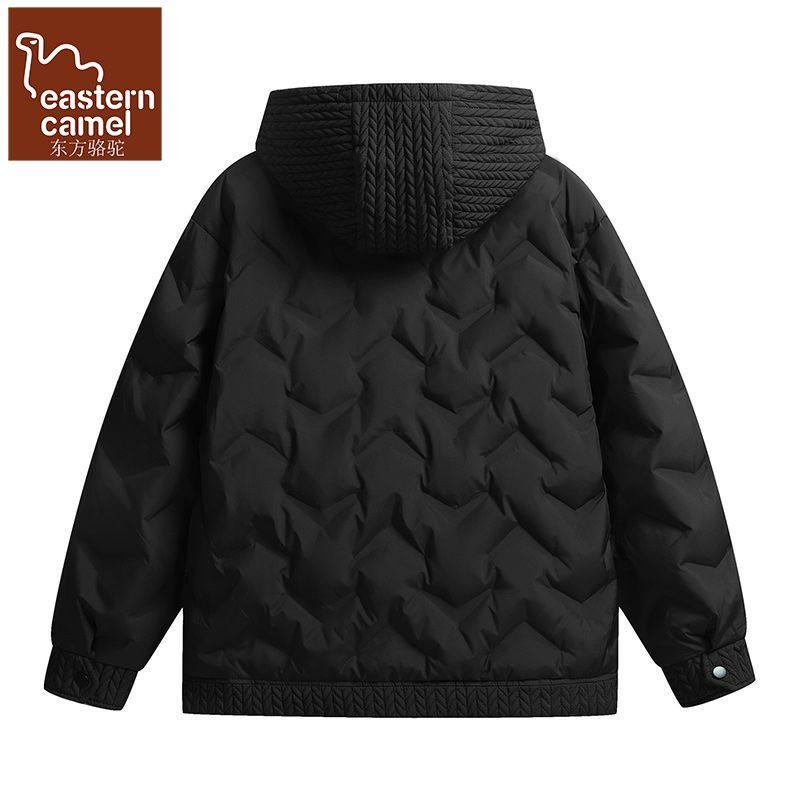 东方骆驼黑色羽绒服男冬季轻薄款白鸭绒保暖防寒休闲男士连帽外套