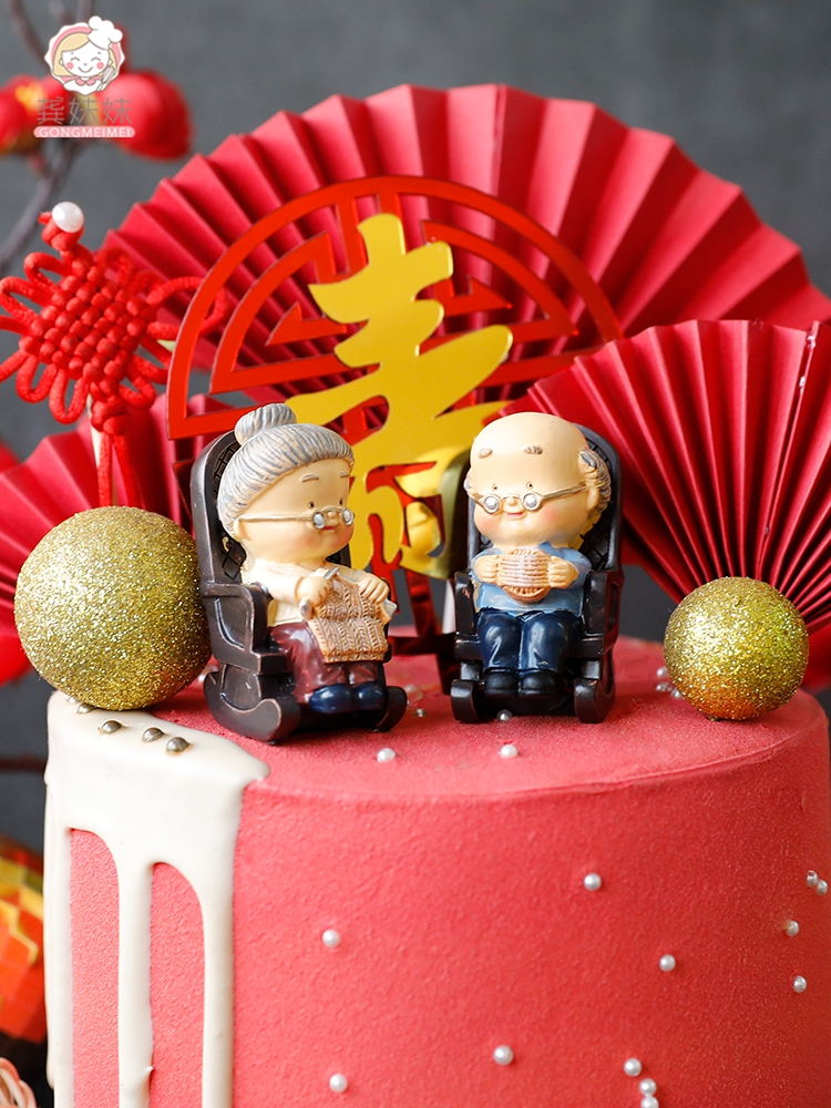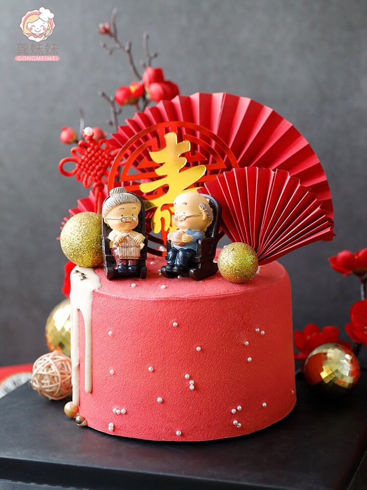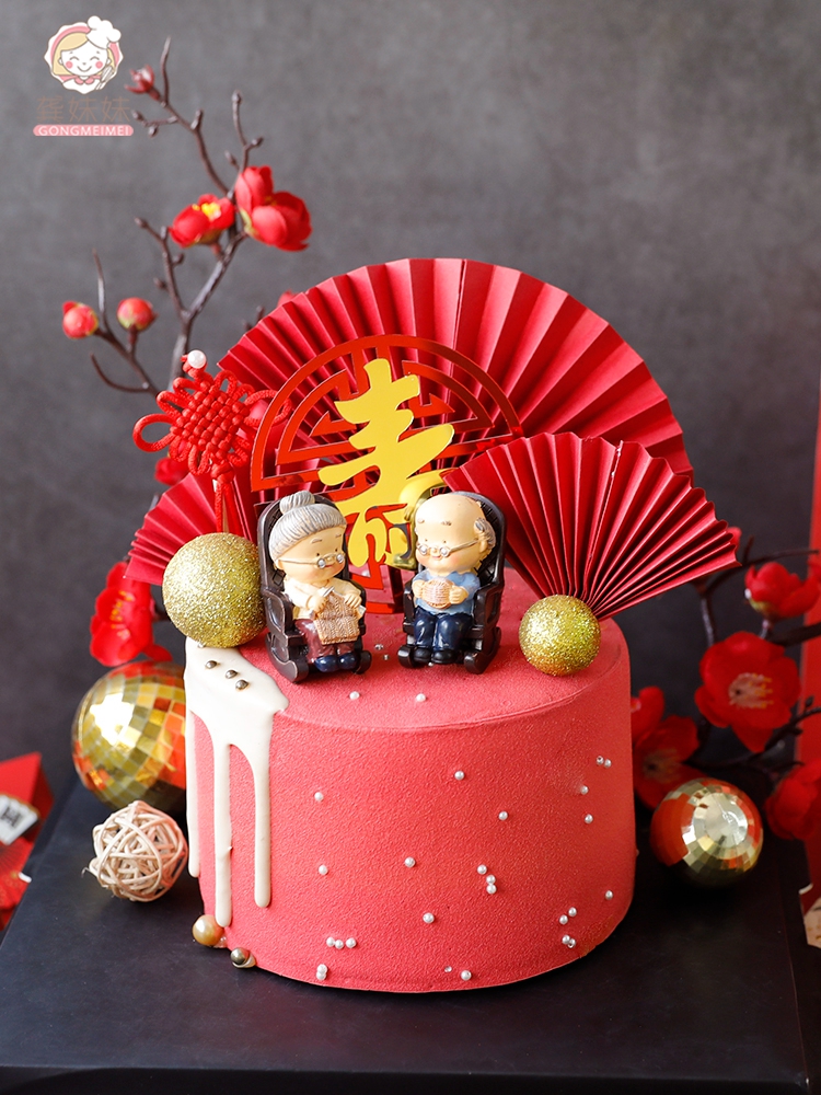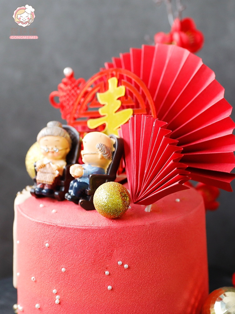 烘焙寿星蛋糕装饰插件折扇纸扇插卡祝寿寿桃生日福如东海甜品装扮