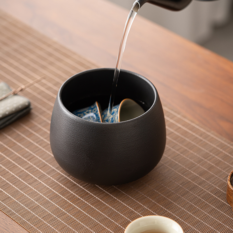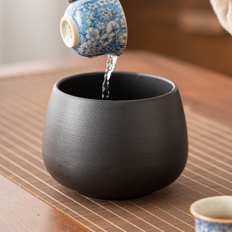 日式陶瓷茶渣缸茶洗笔洗茶杯收纳碗功夫茶具大水孟废水桶家用建水