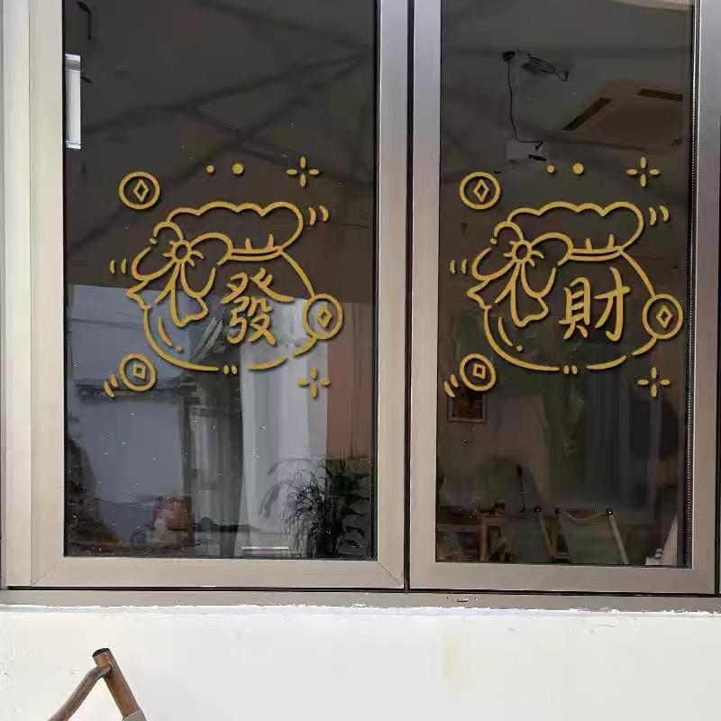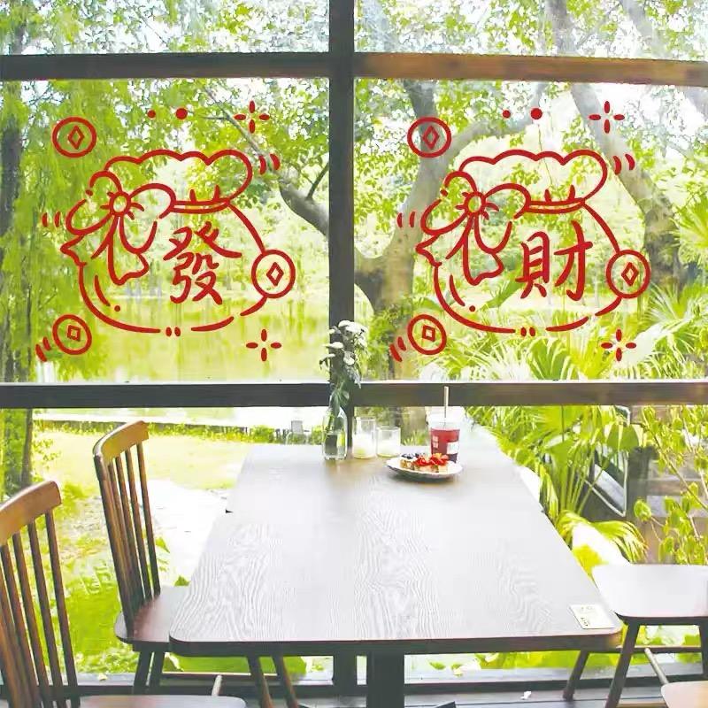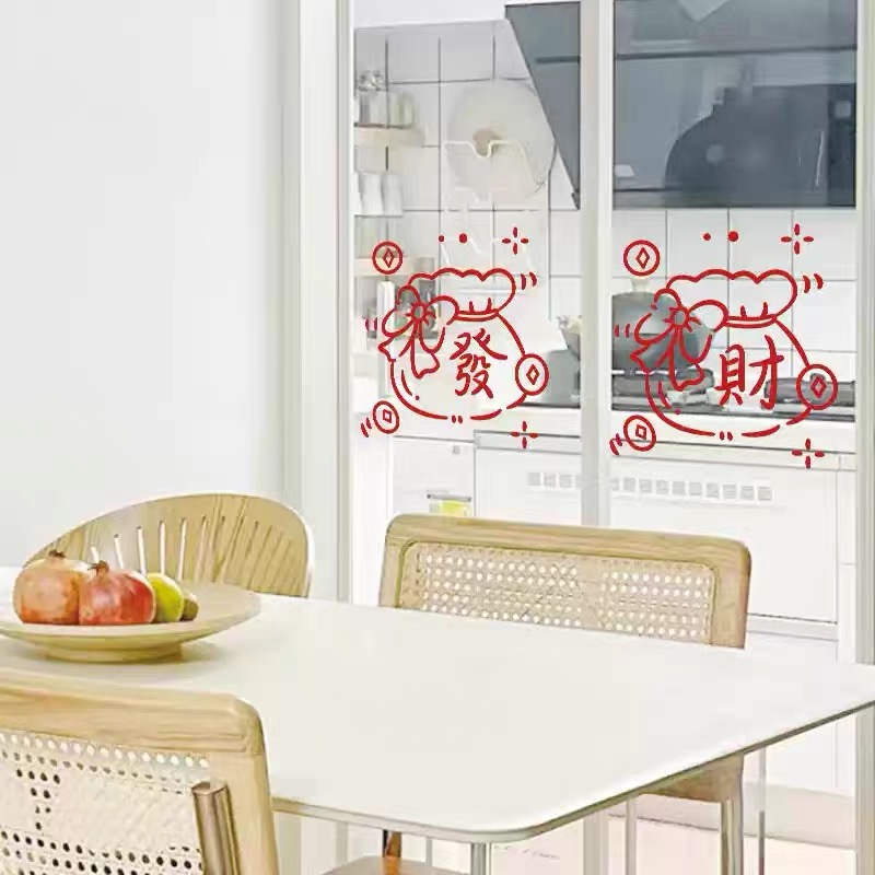 新款福袋发财红色窗花新年装饰贴纸福字玻璃窗贴过年布置喜庆门贴
