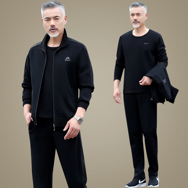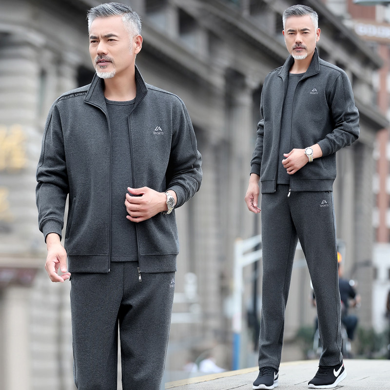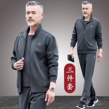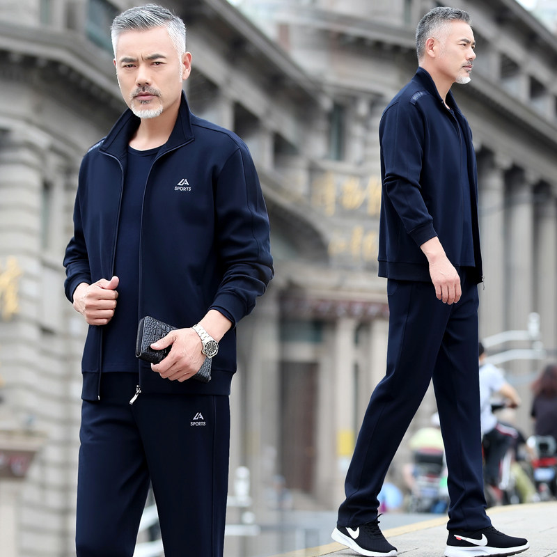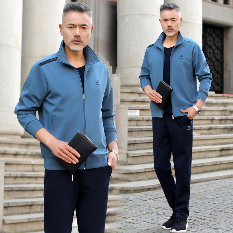 新款春秋爸爸春装运动套装中年男士时尚外套宽松中老年春秋休闲服