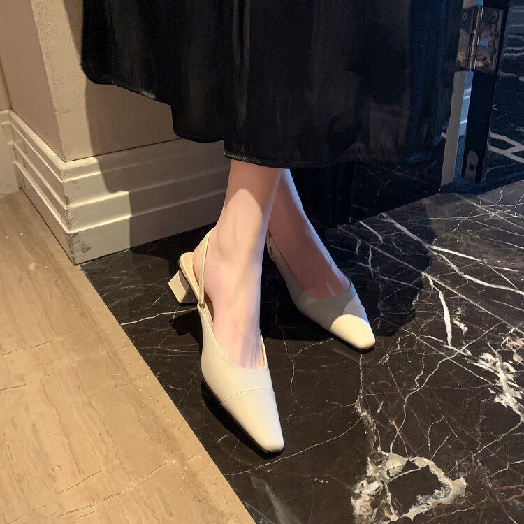 薄荷味得夏天!法式后空单鞋女绿色热风4cm中跟凉鞋夏季女鞋粗跟