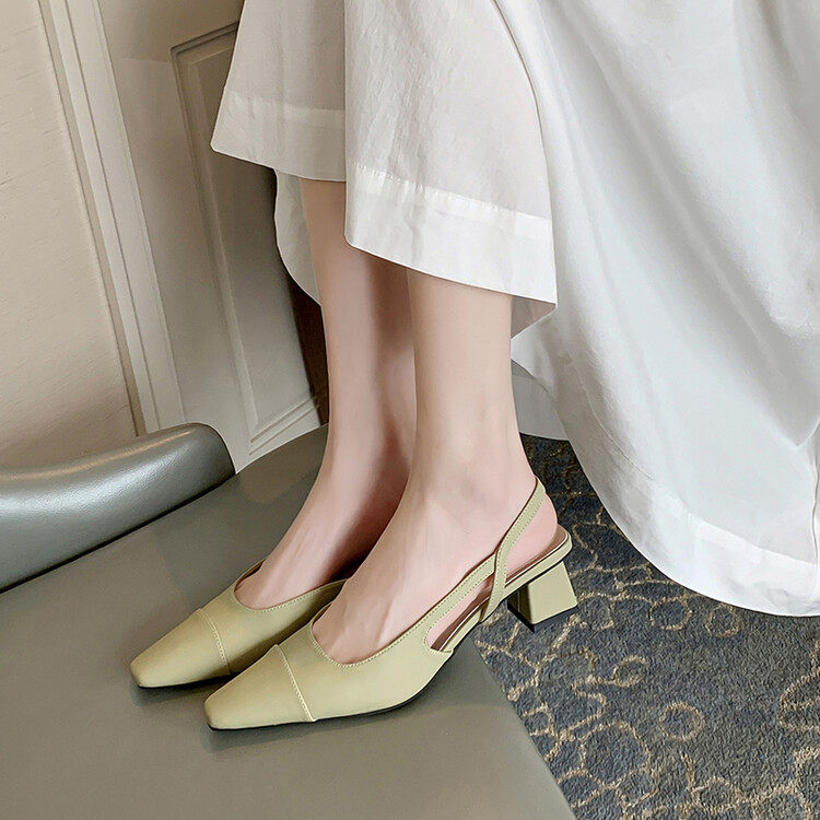 后空单鞋女绿色中跟凉鞋夏季女鞋