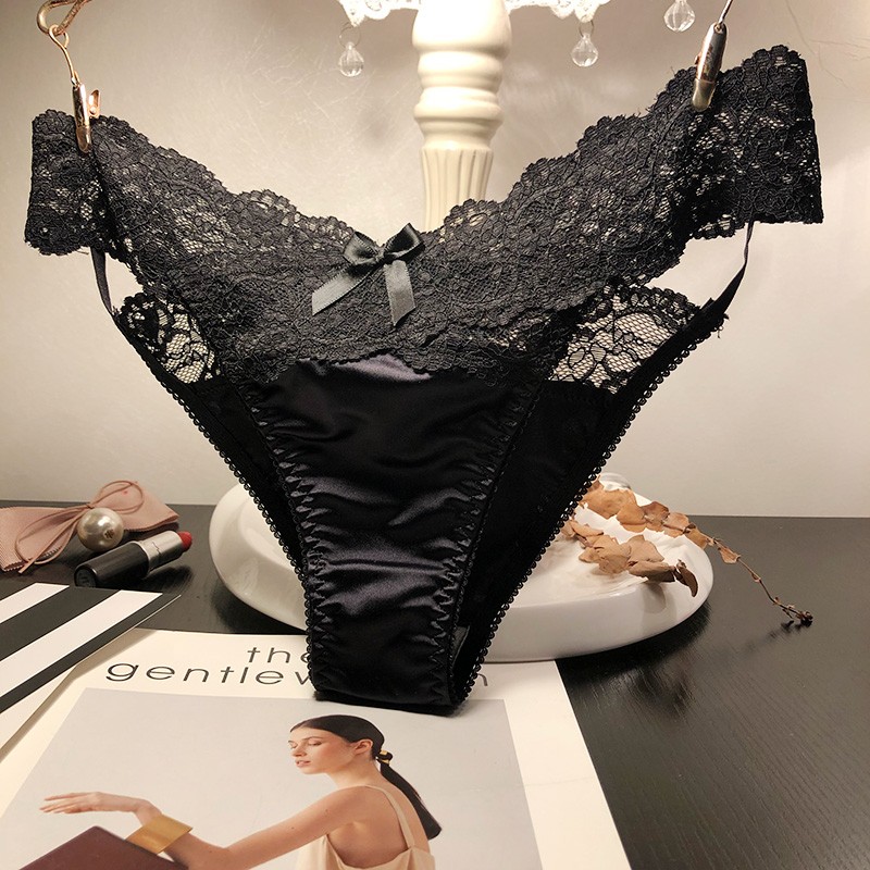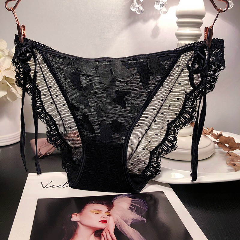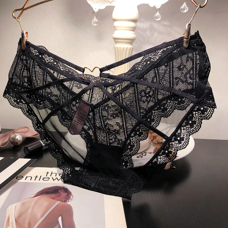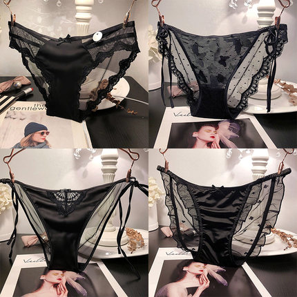 欧美中腰性感蕾丝内裤女士火辣诱惑透明镂空网纱黑色三角裤