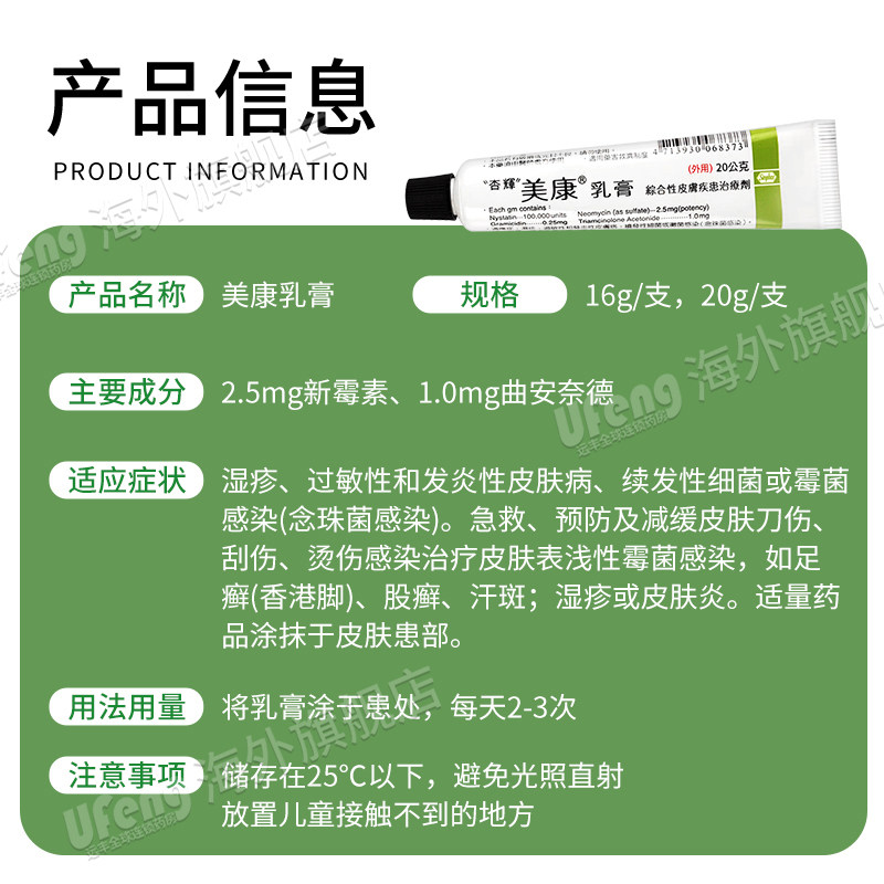 台湾杏辉美康乳膏皮炎湿疹过敏止痒膏皮肤细菌感染霉菌受伤瘙痒
