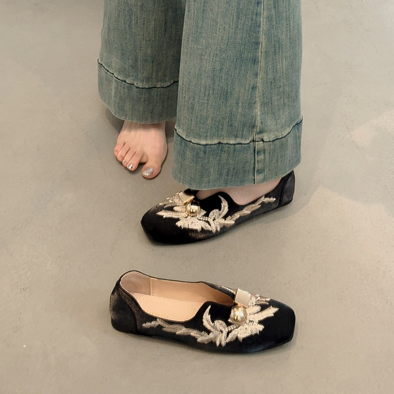 复古新中式2025春季新款低跟女鞋百搭方头单鞋女豆豆鞋平底乐福鞋