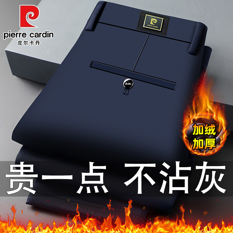 皮尔卡丹男冬款裤子中年加绒加厚保暖休闲裤抗皱免烫商务西裤长裤