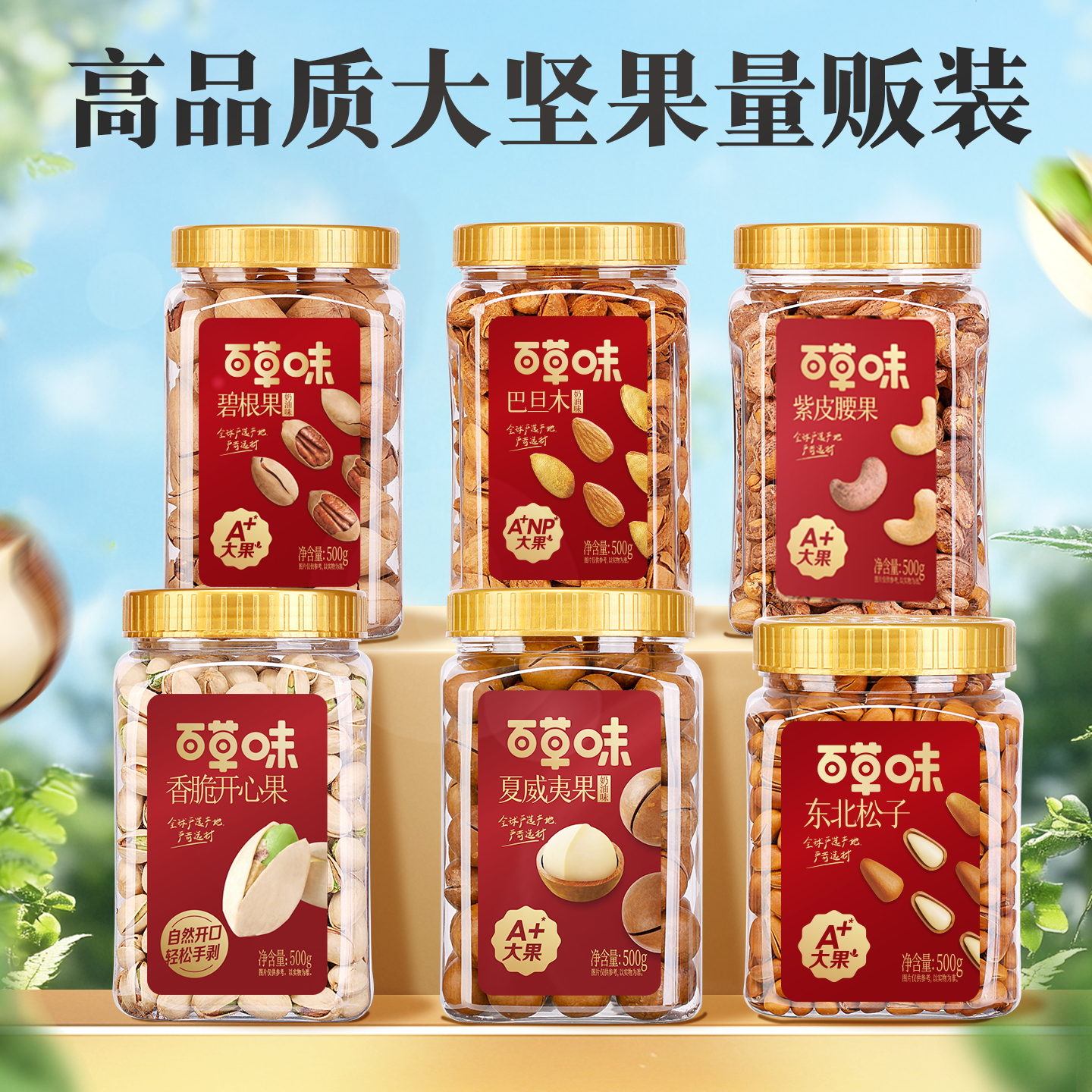 百草味坚果礼盒3罐大颗粒干果过年大礼包松子开心果腰果夏果年货