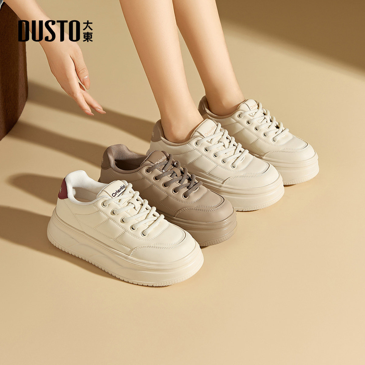 大东dd小白鞋女鞋2026春季新款时尚休闲舒适厚底系带百搭运动鞋子