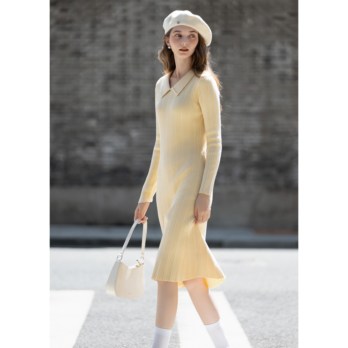 唐狮连衣裙秋冬温柔气质氛围感女士翻领修身收腰显瘦连衣裙TMTA