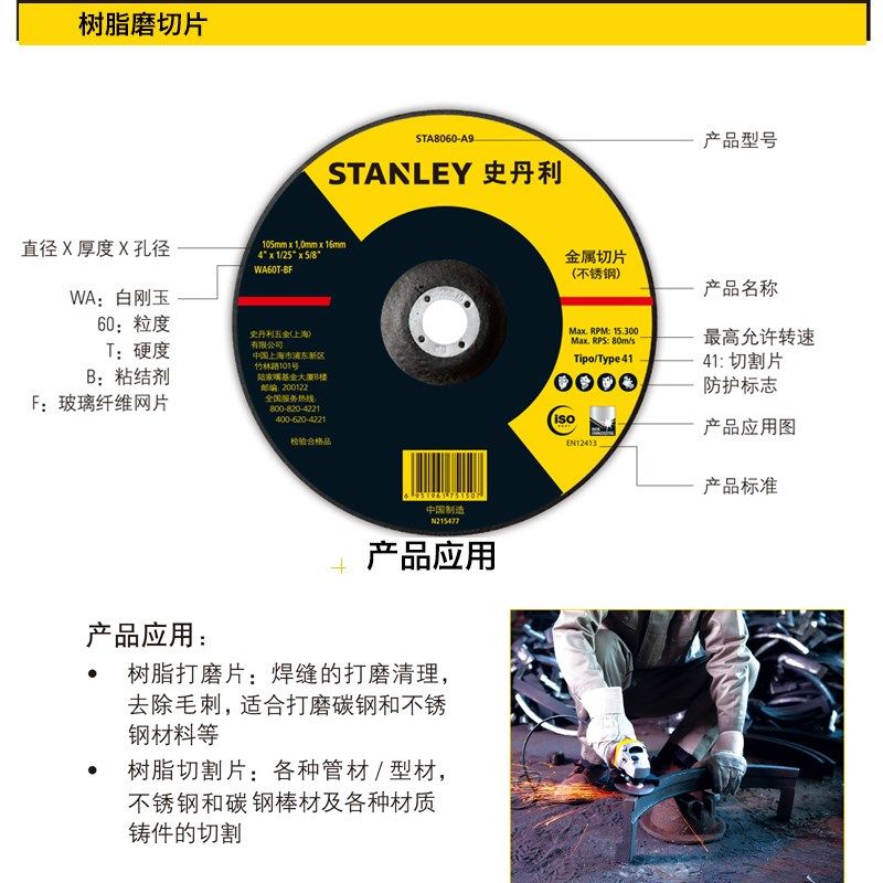 得伟史丹利打磨片切割片100/105/125/150mm角磨机金属角磨砂轮片