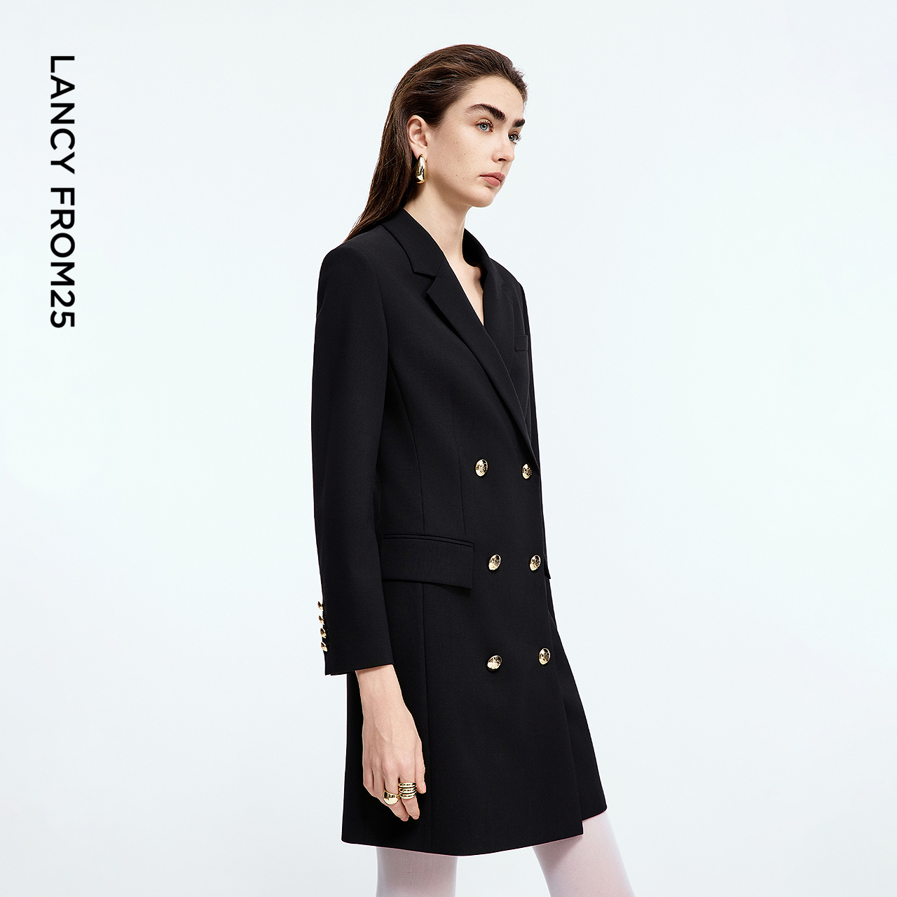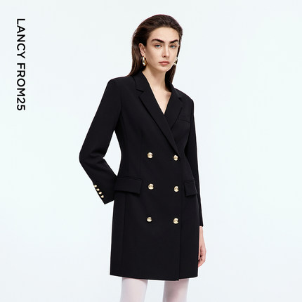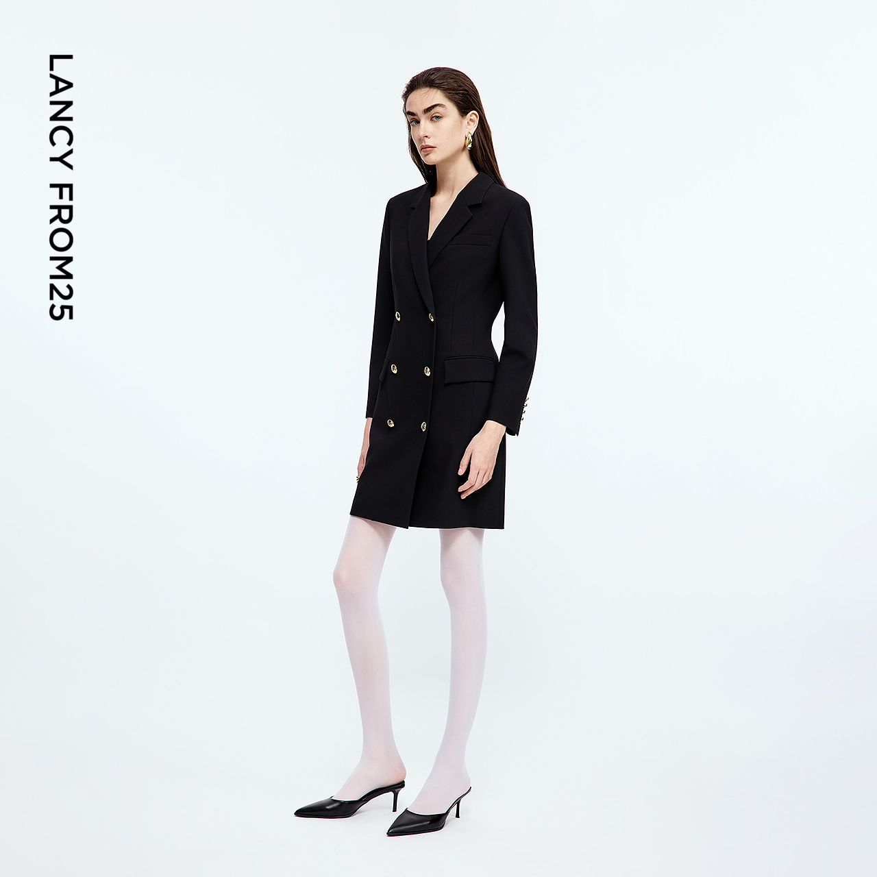 朗姿高级感羊毛西装连衣裙女双排扣商务高端裙装2025年秋季新款